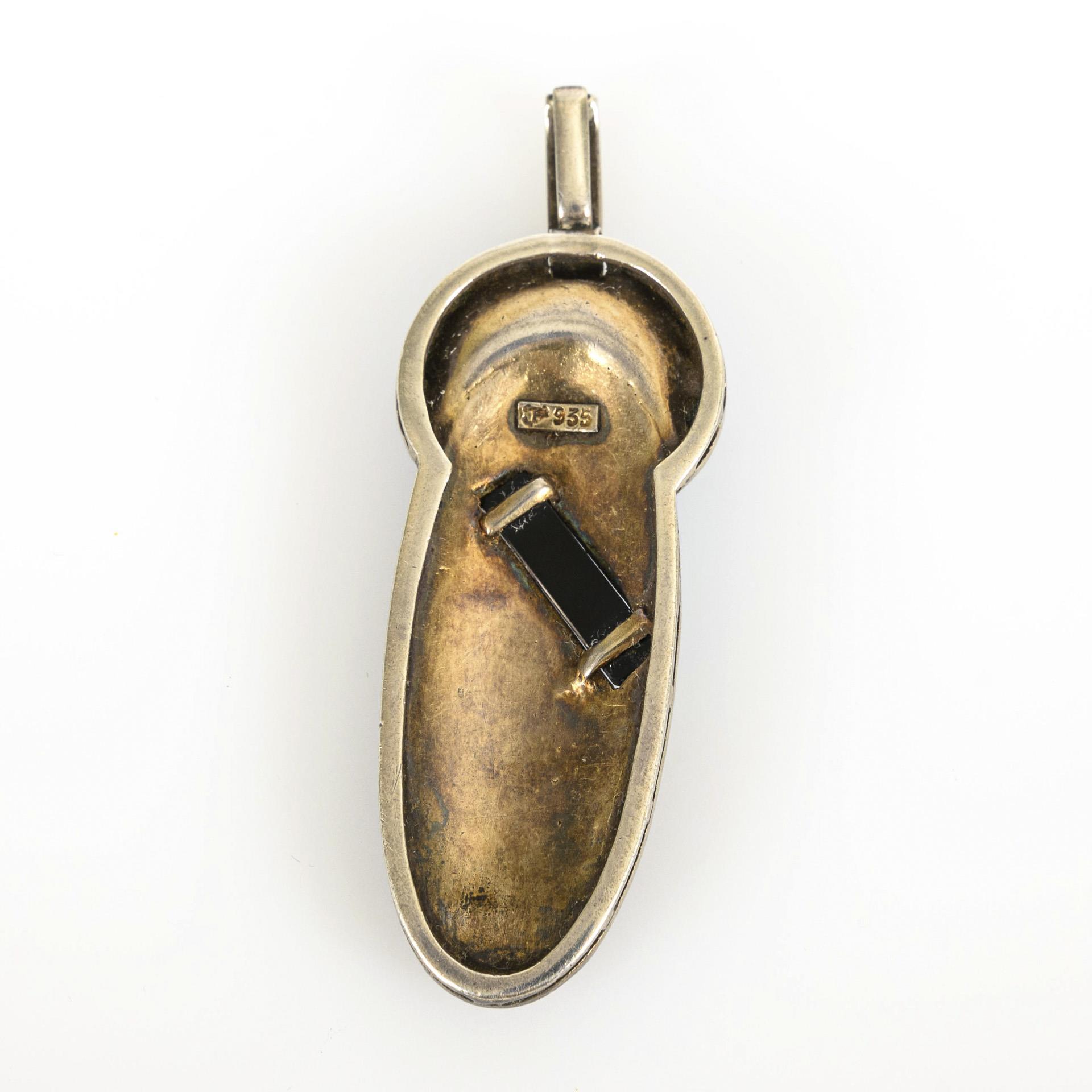 Silver 935 stamped, TF circle hallmark. 5.5 x 2.5 cm (without ¨se). 16.2 g.