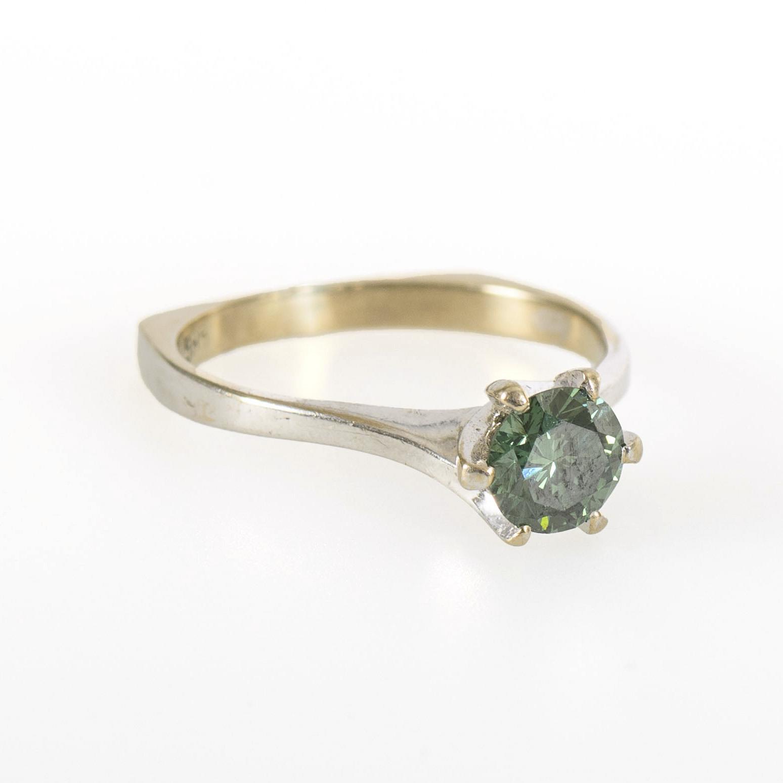 Stamped 585 white gold. Diamond diameter approx. 7 mm. Ring size 54.5. 2.9 g.