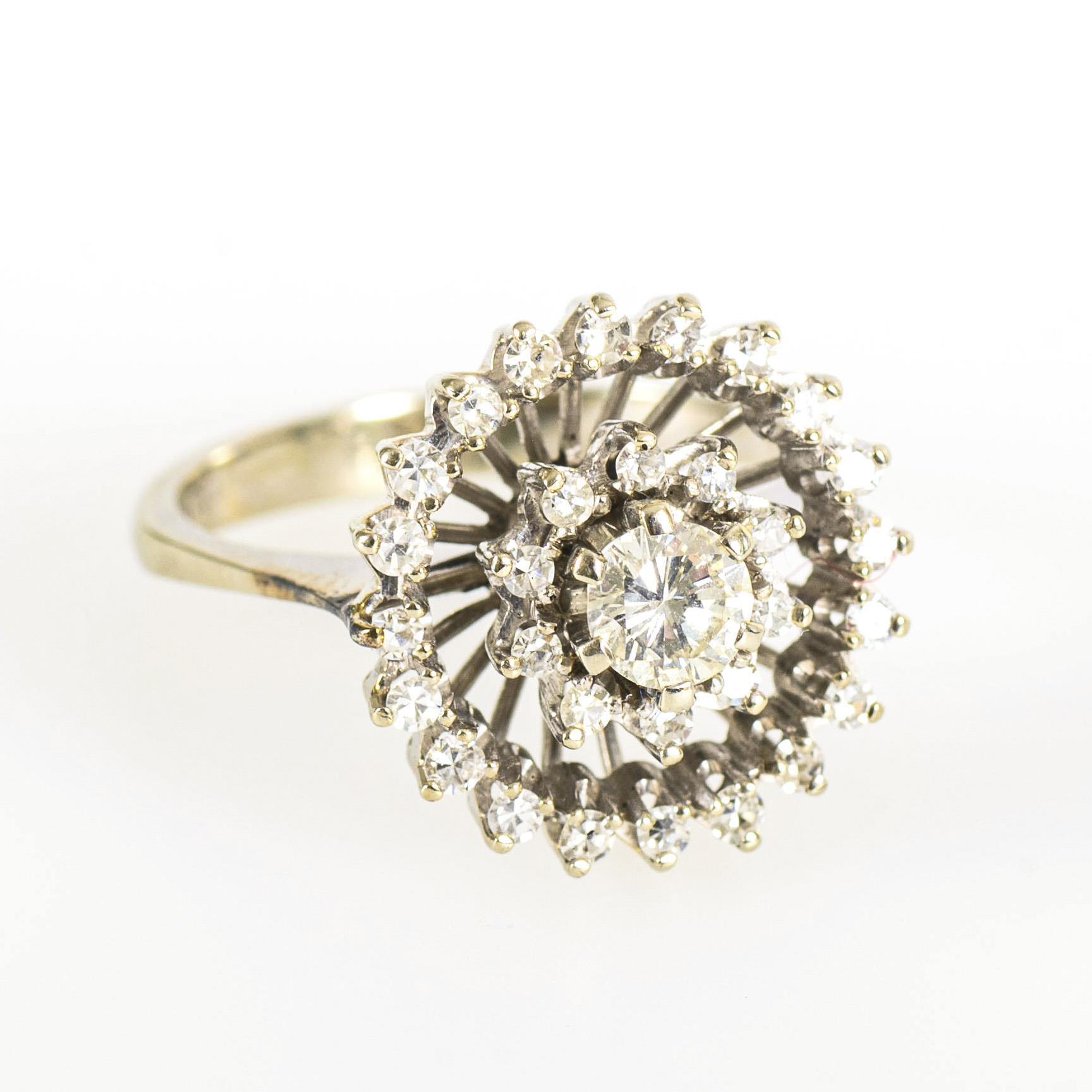 Stamped 750 white gold. Diamond diameter approx. 4 mm. Ring size 53. 4.5 g.