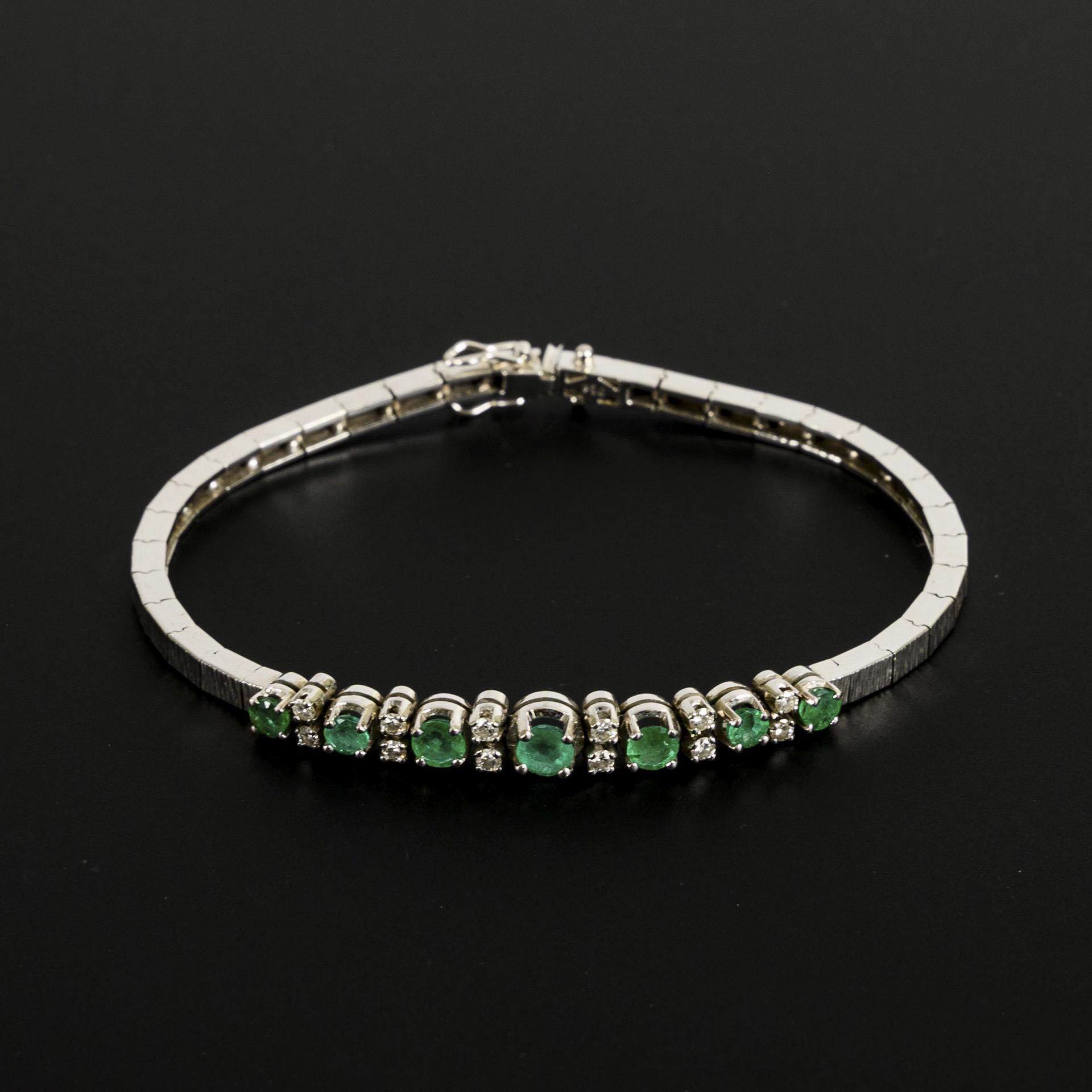 Bracelet of "Klötzli links" with chaton-set emeralds and small brilliant-cut diamonds. Box lock with 2 figure-of-eight safety catches.
