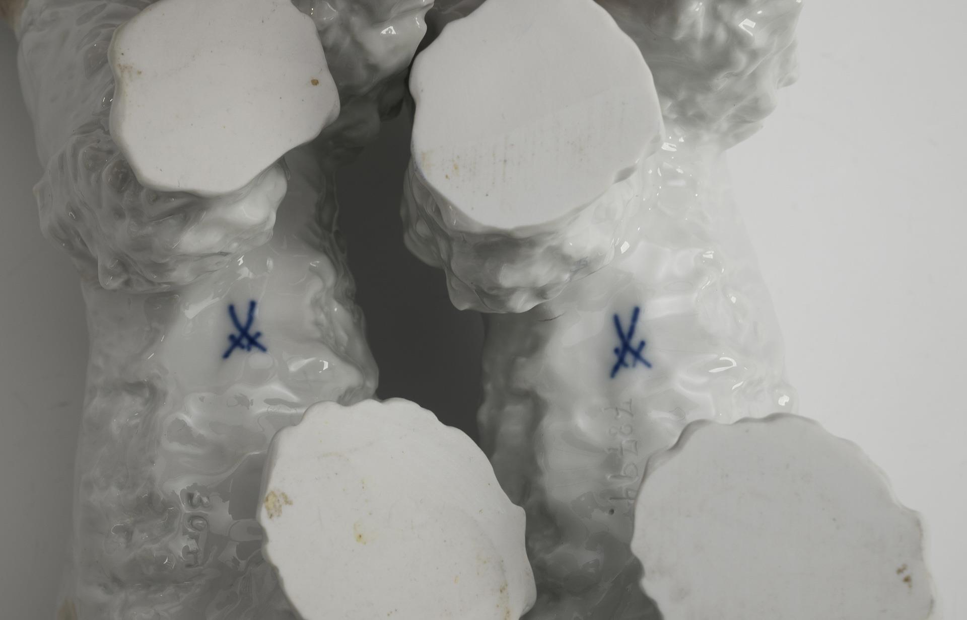 1x white, 1x with minimal color staffage. H 11 cm, L 23 cm.