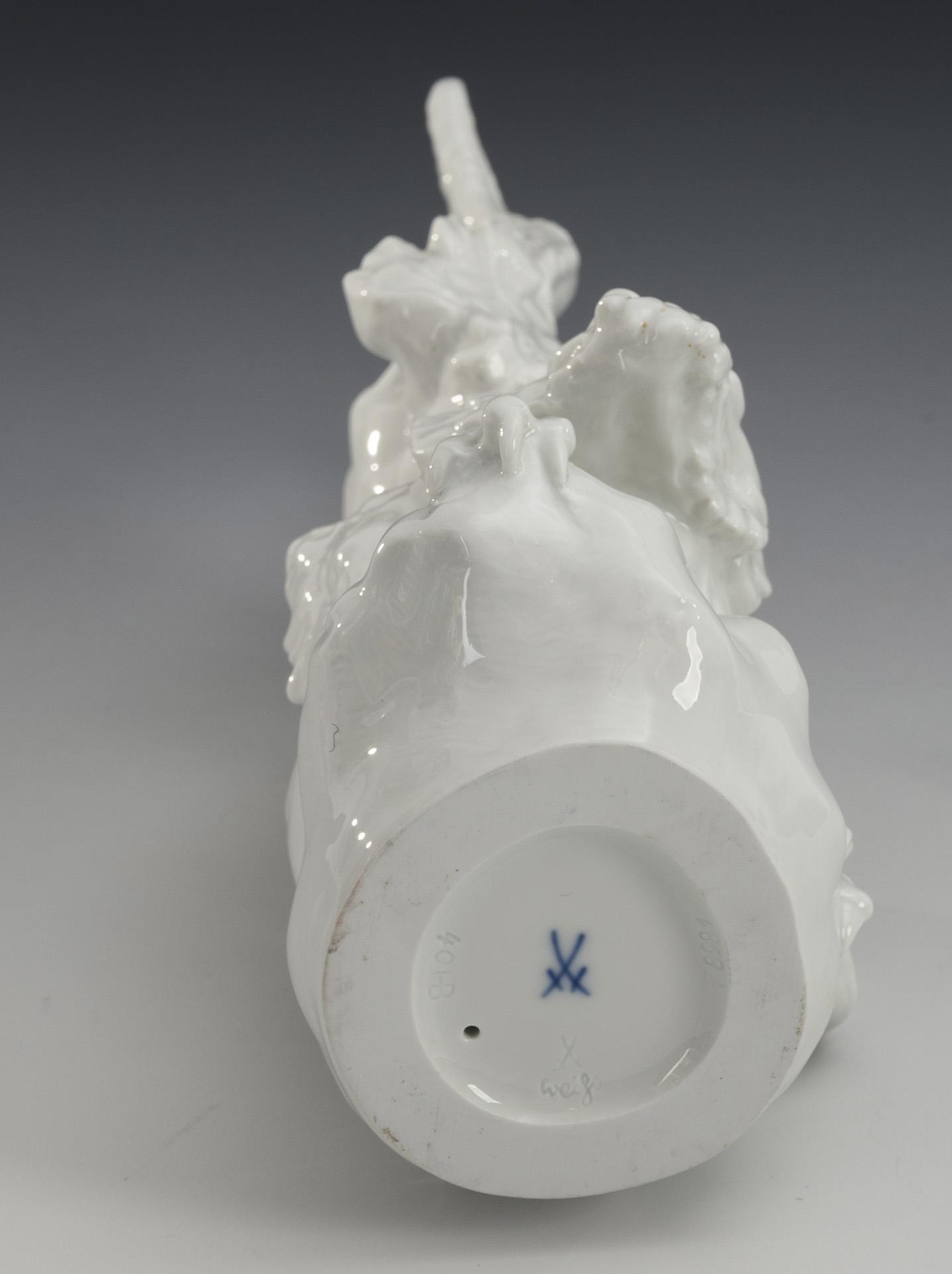 1x model no. 78981, design 2011 by Jörg Danielczyk (* 1952): Dragon figure on a rock (H 29 cm). / 1x wall plate with the decoration "Red Ming Dragon" (Ø 26 cm).