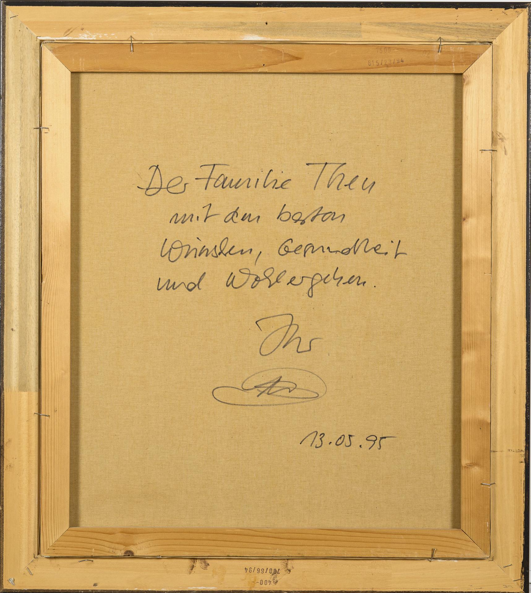 Oil/canvas. Signed lower right, verso dedication dated 13.05.(19)95.