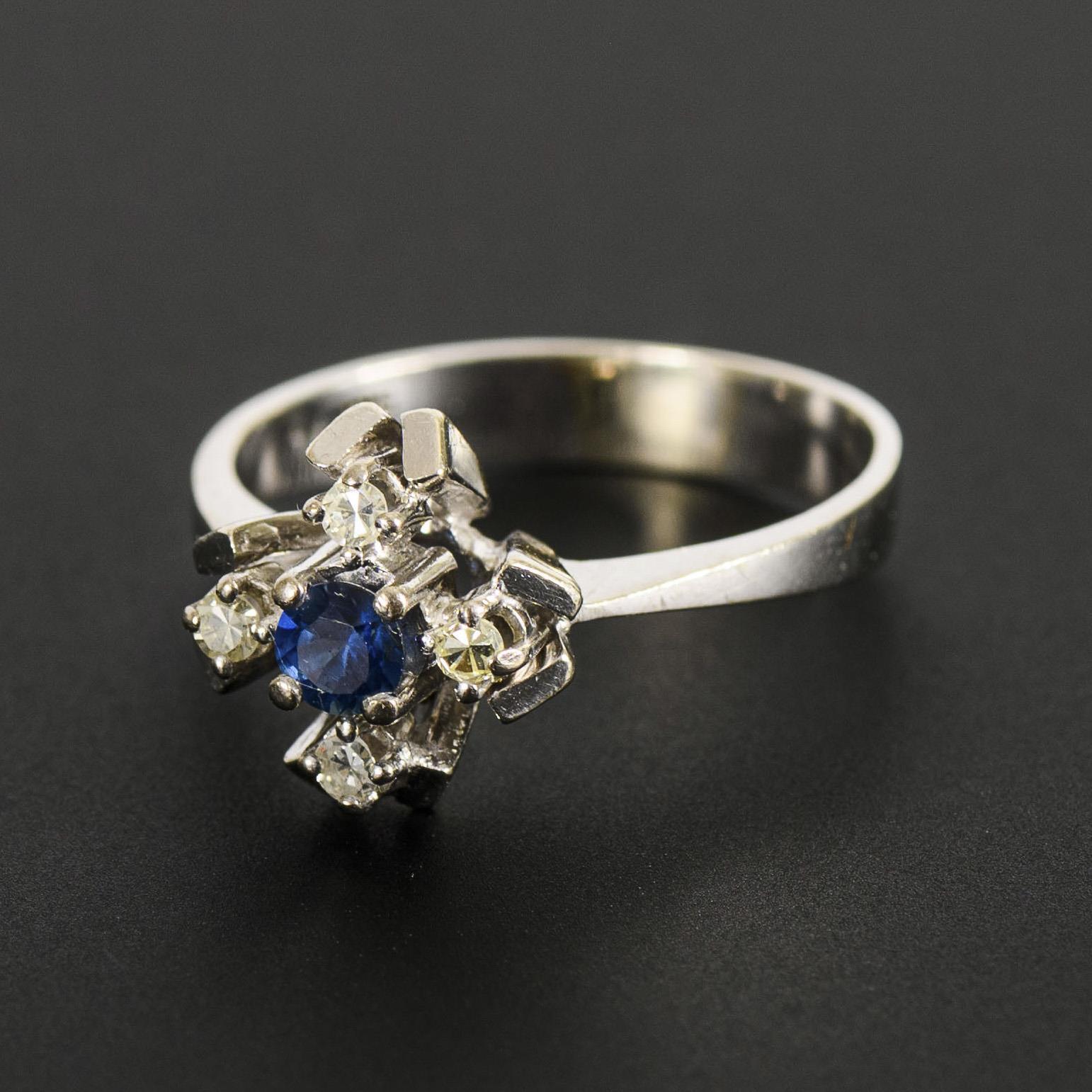 Stamped white gold 585. Ring size 55. 3,9 g.