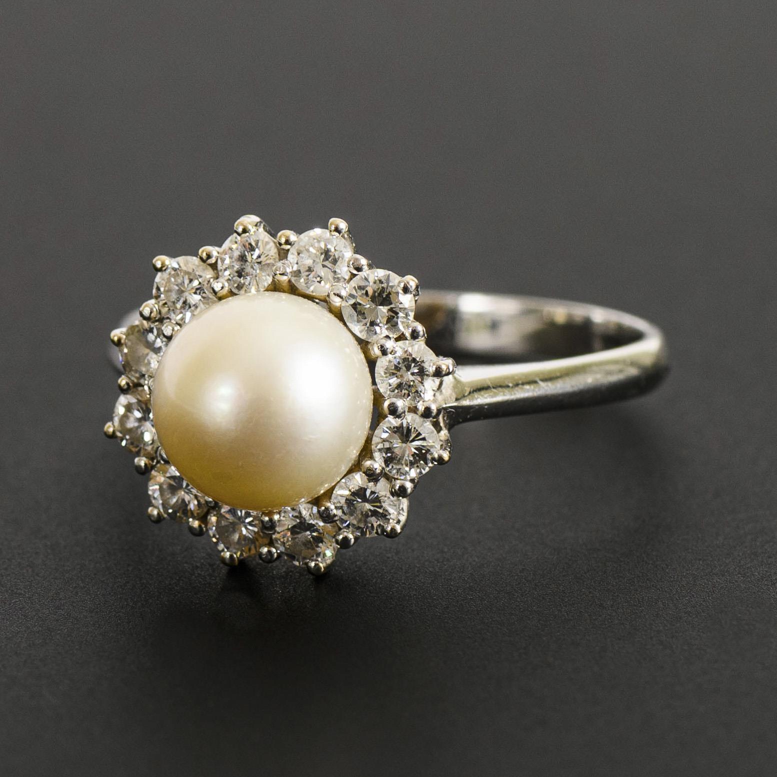 Ring with pearl and diamonds.