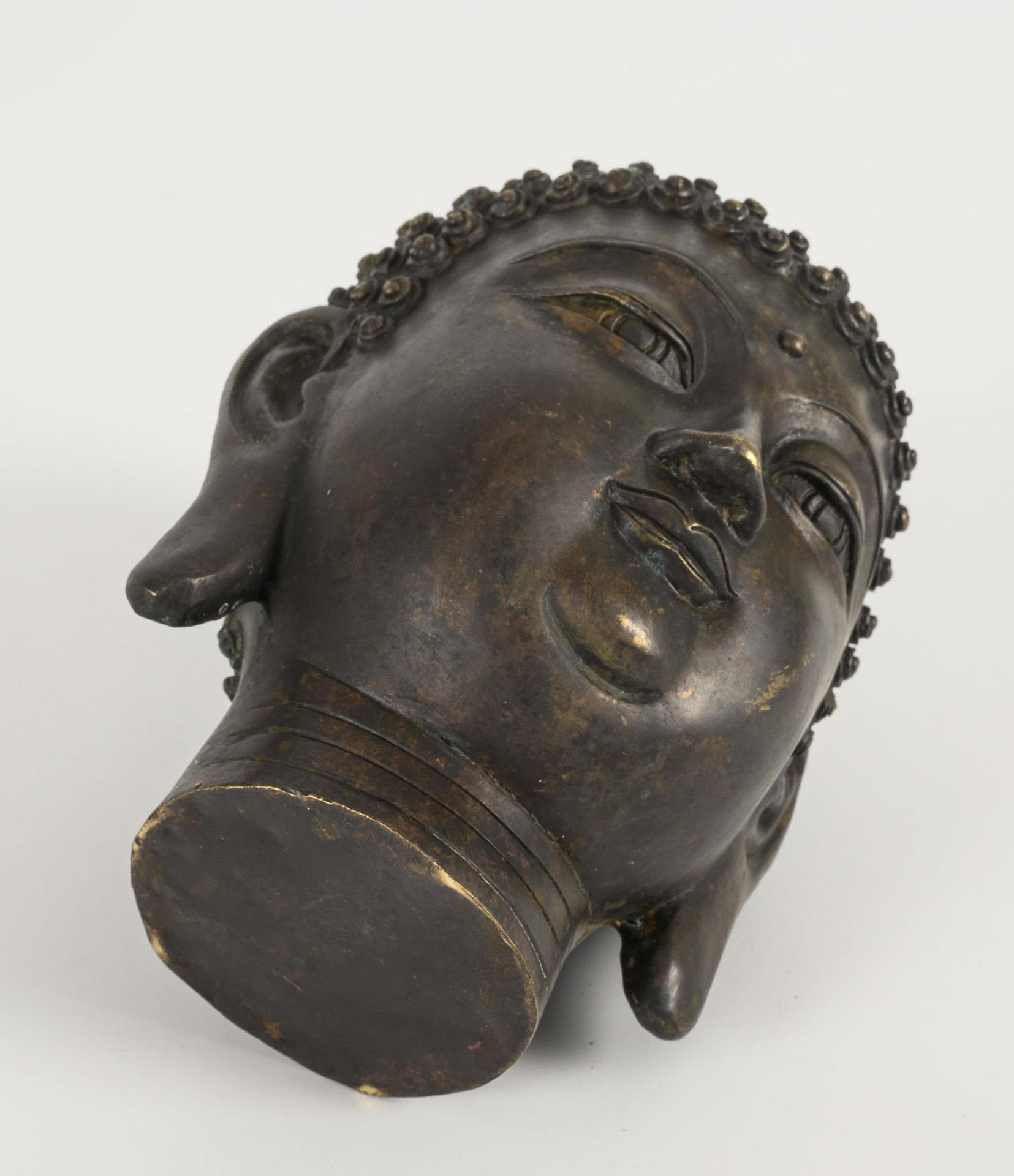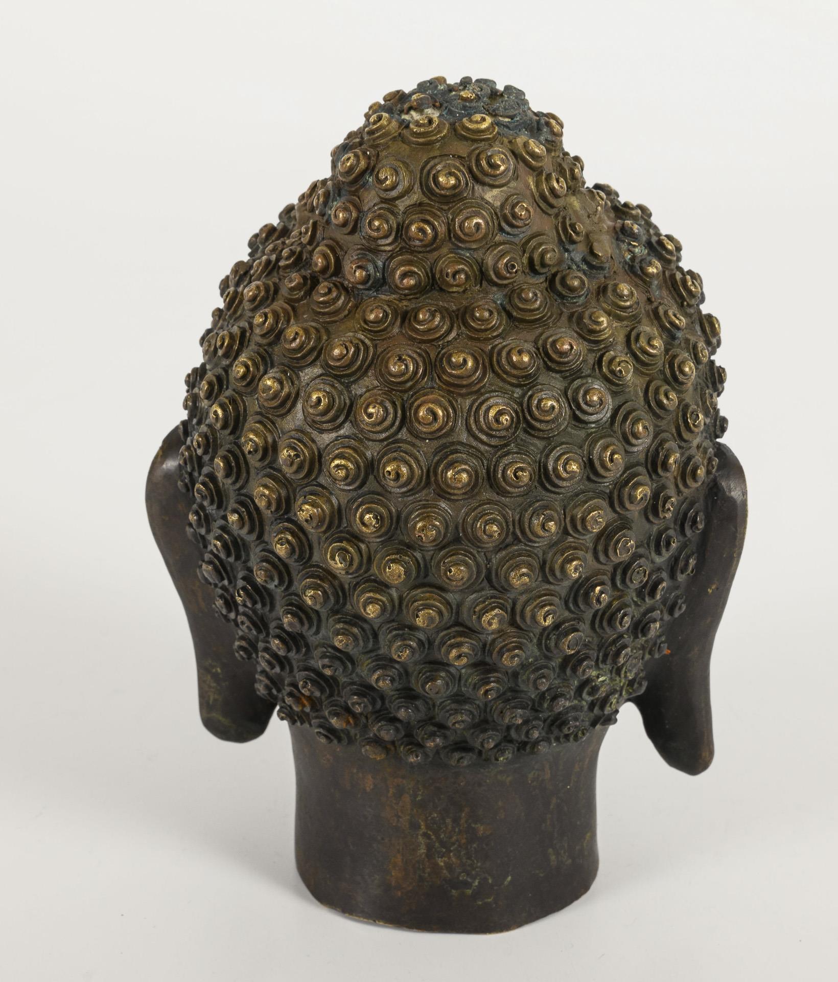 Bronze, closed base. Slight traces of seams on the sides. Curls partly with patina.