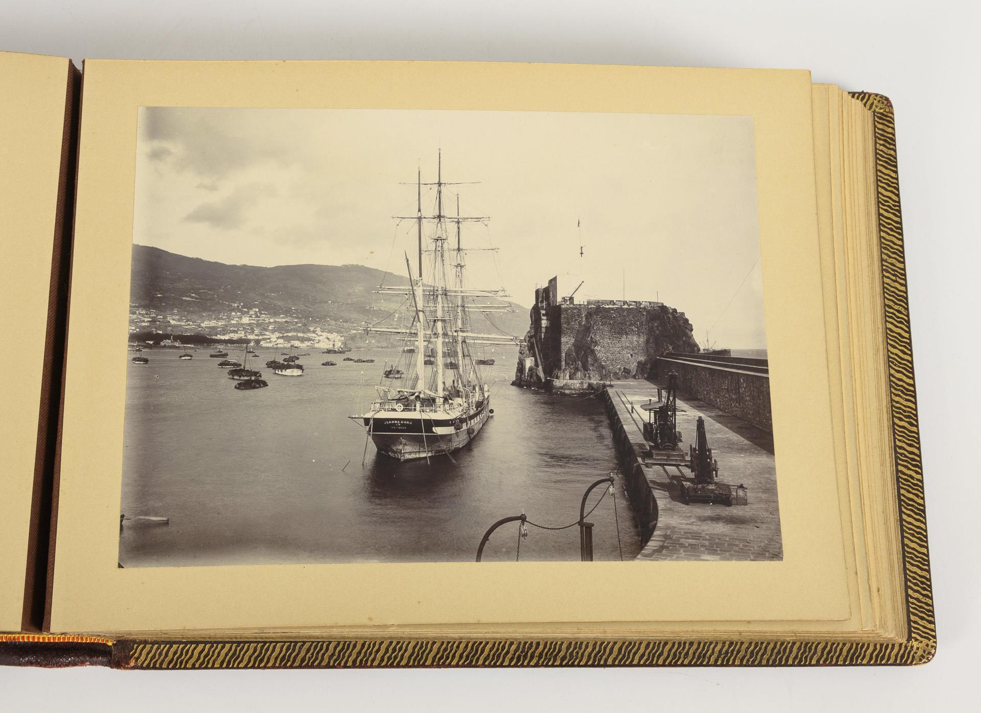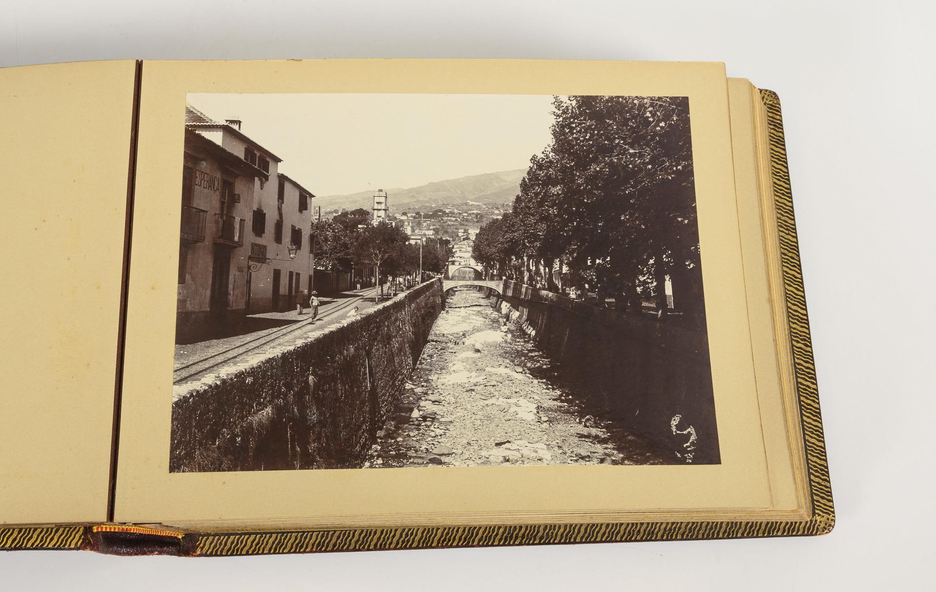 25 full-page, probably professionally produced photographs, compiled in a custom-made album. Gold-stamped, wine-red leather binding by Moritz Mädler, Leipzig.
