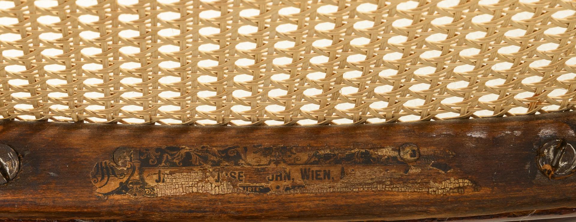 Elegant shape with curved segments and rolled ends. Curved runners with straight cross bracing. High backrest and seat with added Viennese weave. In addition, a separate, cross-braced footrest.