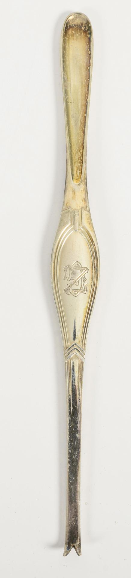 Simple Art Nouveau design, 6 forks each with monogram engraving "ZG" and 6 forks with monogram "SG".