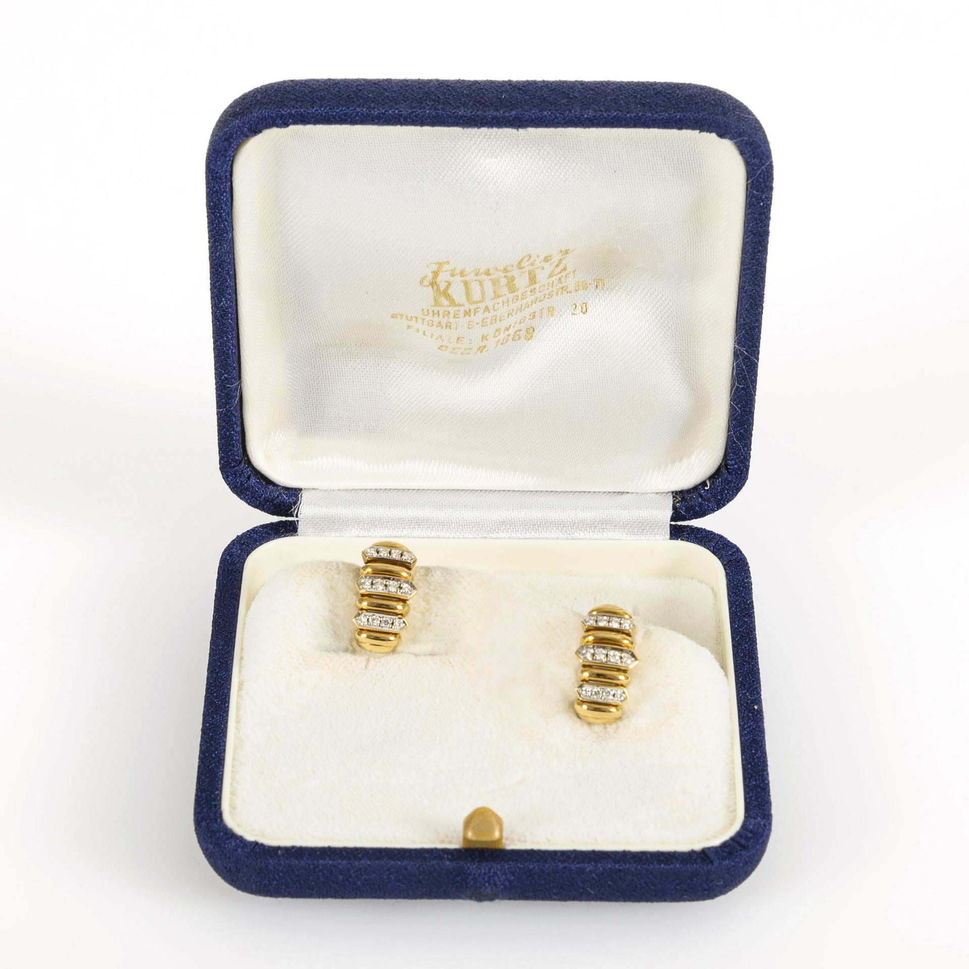 Marked 750 yellow and white gold. Length: 1.5 cm. 6,7 g.
