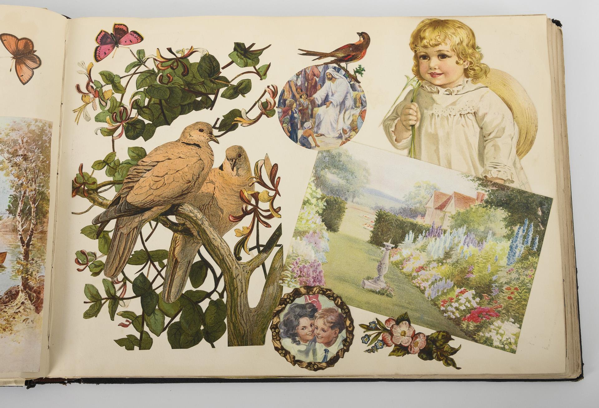Leather binding with gold embossing, mostly color lithographs, a few wafers decorated in gold, some offset prints. 28 x 38 x 4 cm.