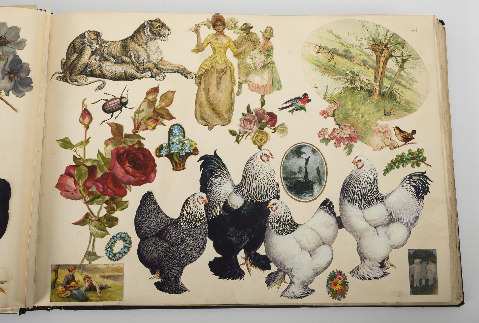 Collector's album with various themes: Animals, hunting, flowers, genre, children, ladies, caricature, landscapes, ships, etc.. Partly after paintings, partly labeled in English. Some few traces of age/use.