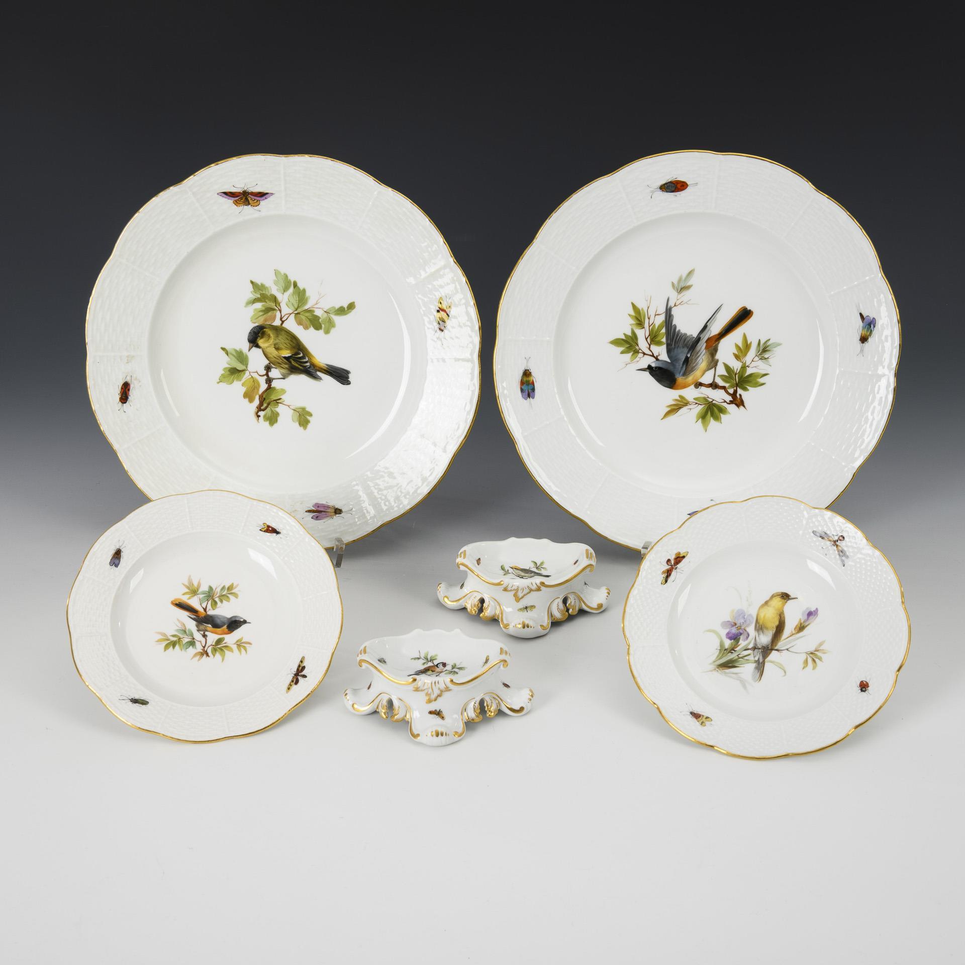 2+2 plates and 2 salvers with bird painting. Meissen.