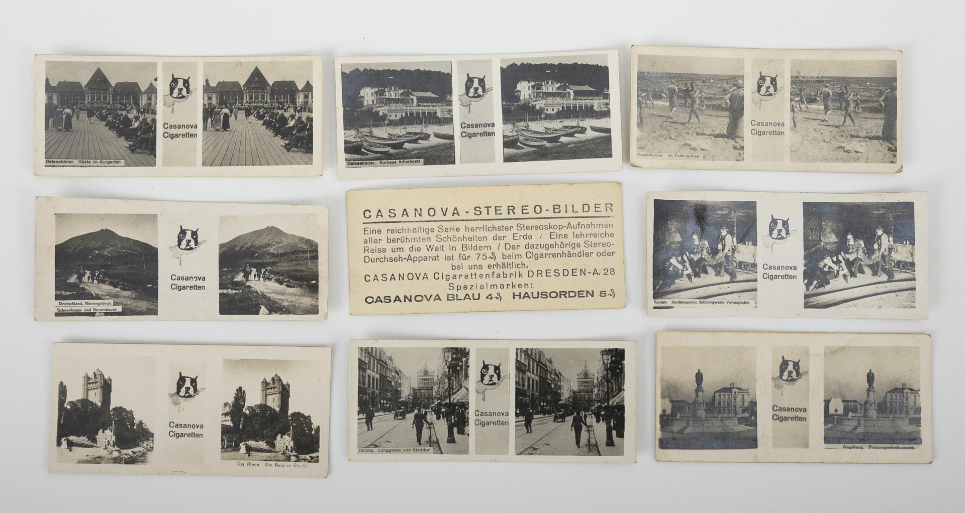 Reklame stereoscope "Casanova Cigaretten" in small case.