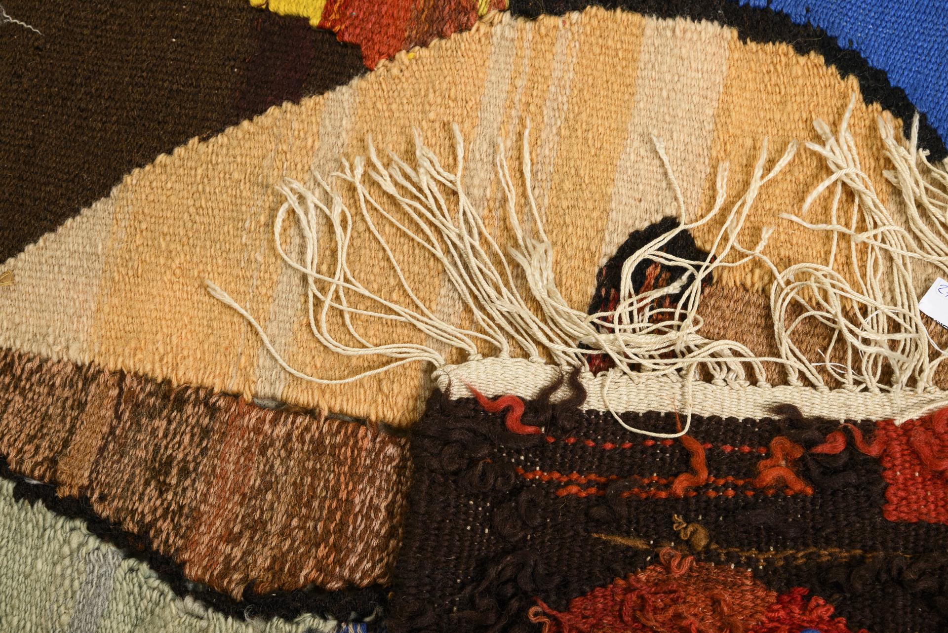 Probably a piece from the Bauhaus textile workshop, which was led by Gunta Stölzl from 1927 and was oriented towards abstract, geometric, but also figurative art forms and art techniques from other parts of the world.