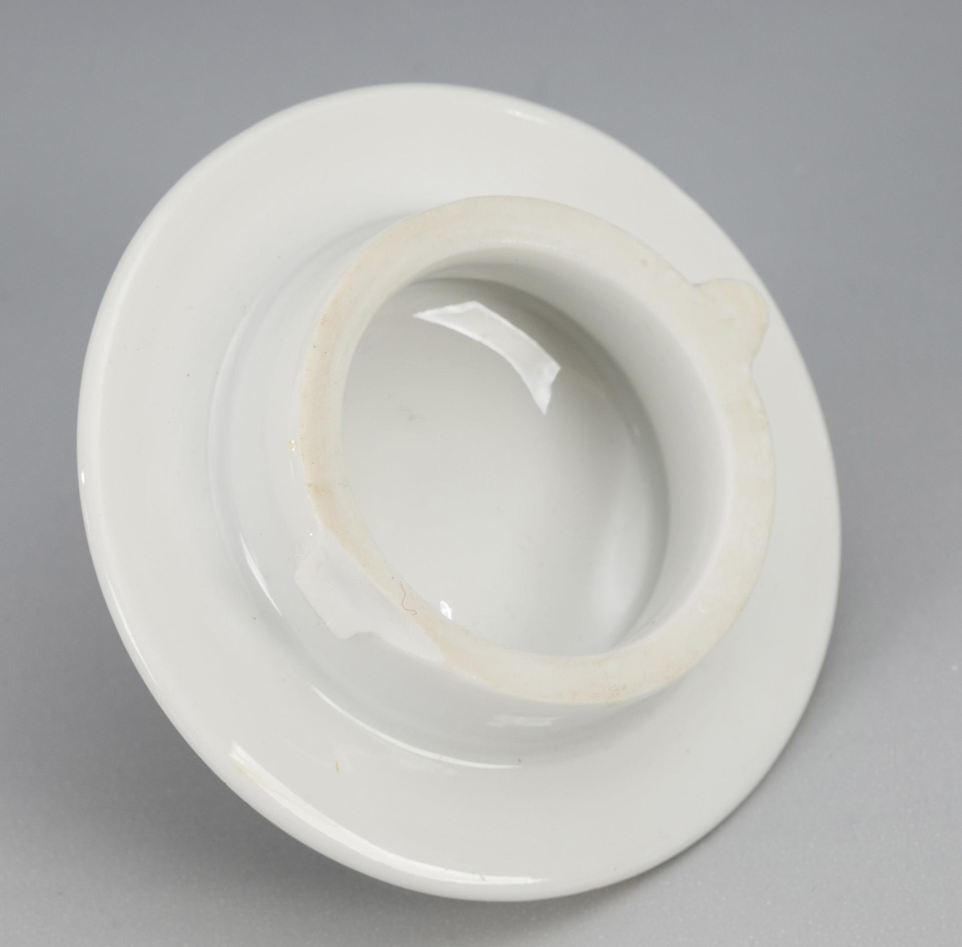 Rocailles decoration. Mocha pot (h 18 cm), milk jug (h 13.5 cm), sugar bowl (h 9.5 cm), 3 mocha cups, 3 saucers. Cup lid inside with defect, 1 cup with minimal chip (approx. 1 mm) to the foot, 1 saucer with 2 small defects in the painting.