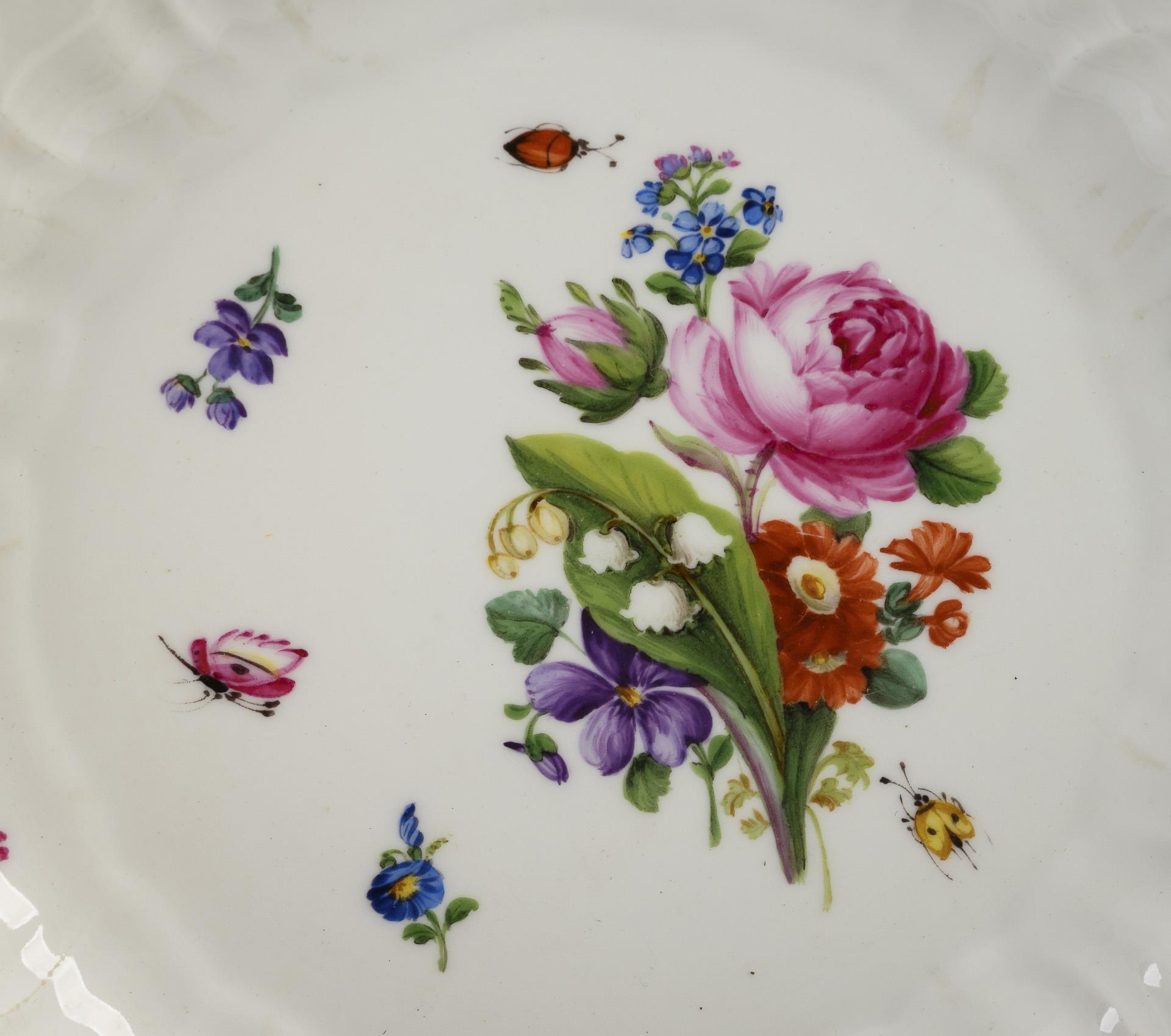 12 plates with flower and insect painting. Meissen.