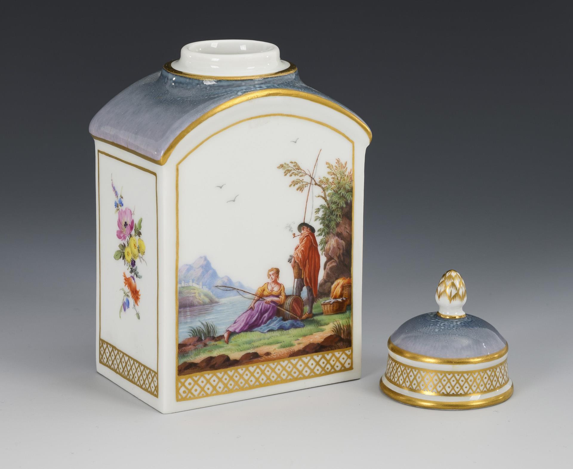 Tea caddy with genre painting. Meissen.