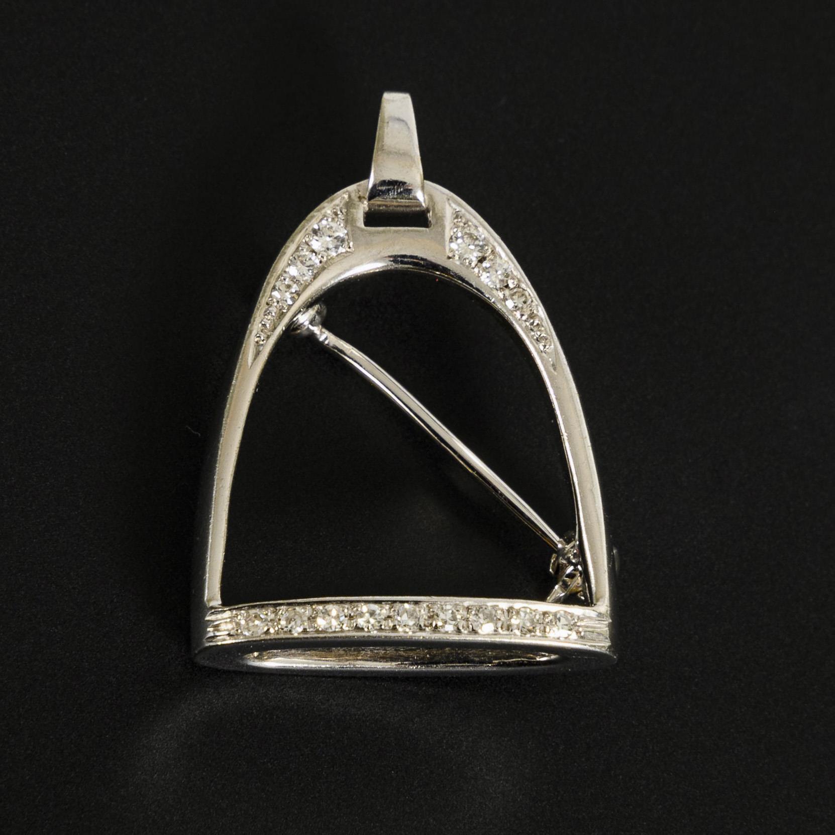 Brooch in the shape of a stirrup, set with 4 pavé-set brilliant-cut diamonds and 11 octagonal-cut diamonds, pin with ball hook clasp.