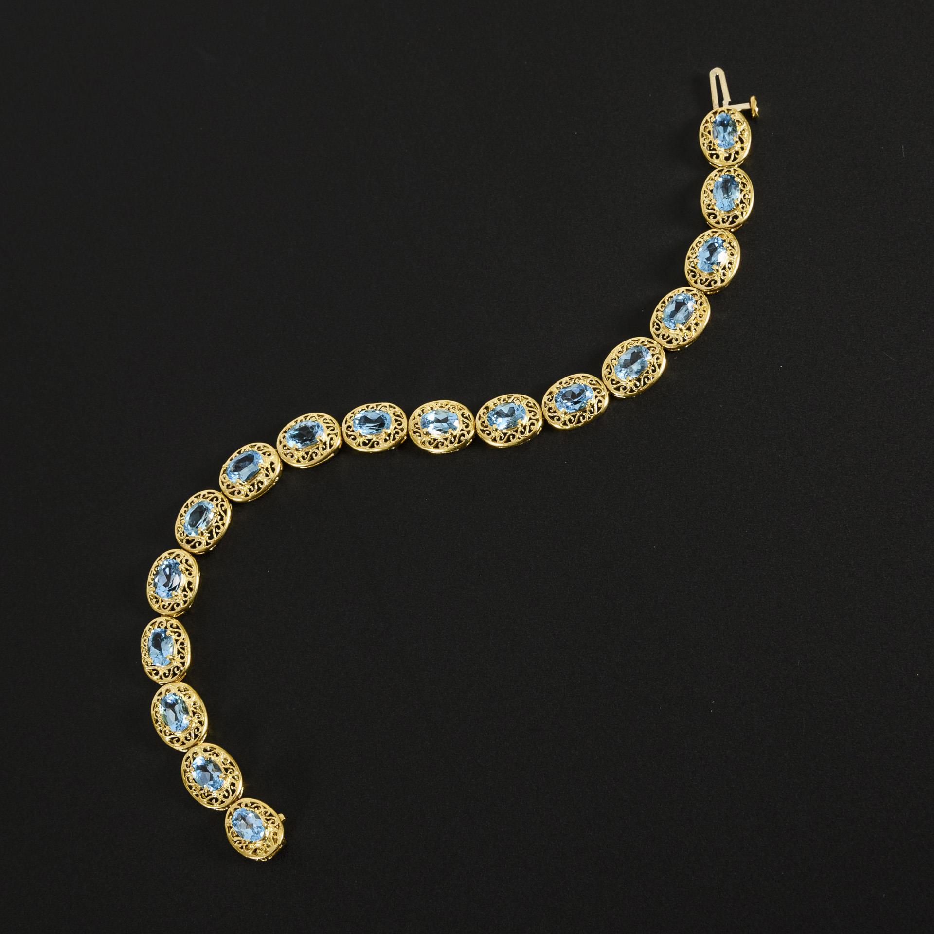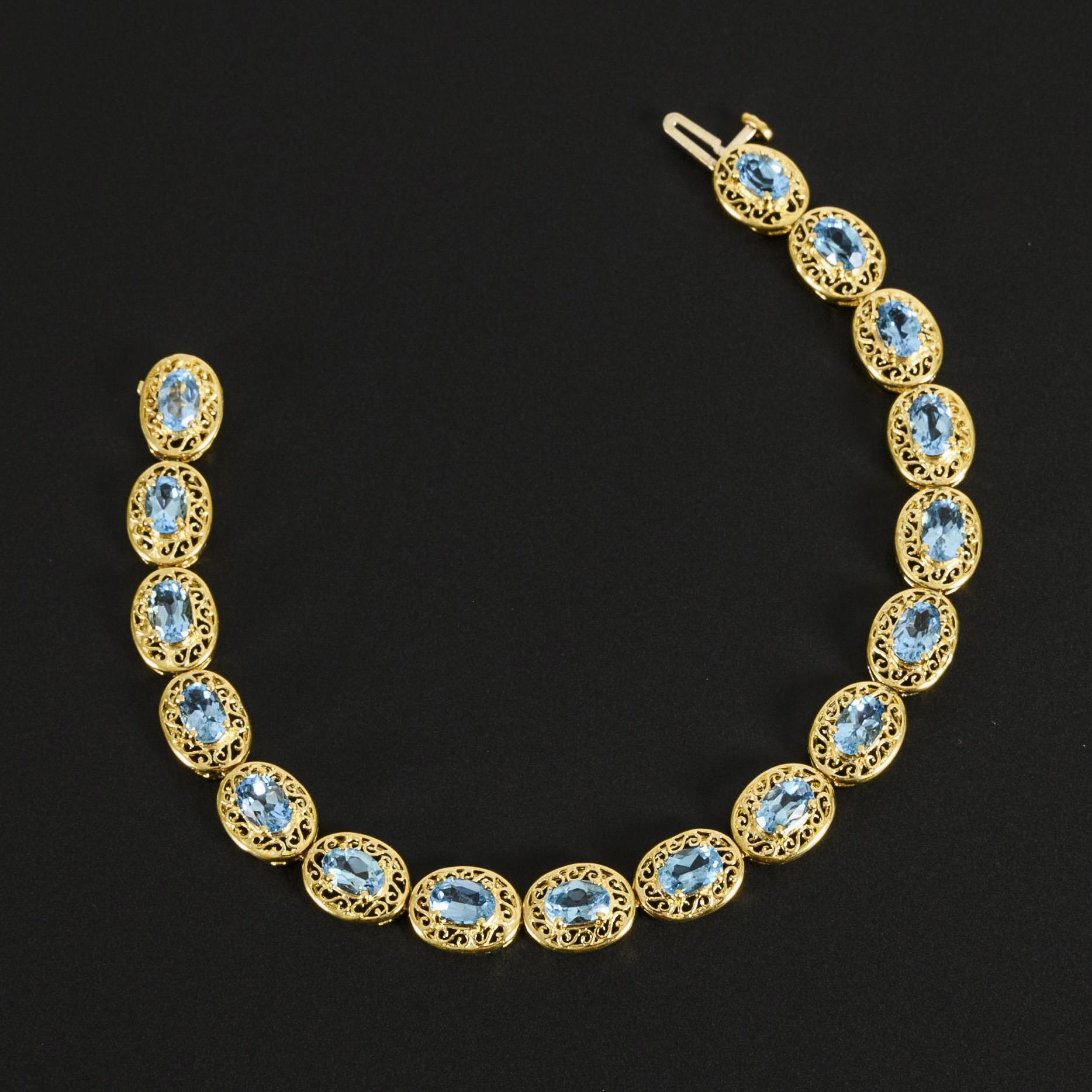 Delicate bracelet with 17 chaton-set topazes (treated) in filigree links.
