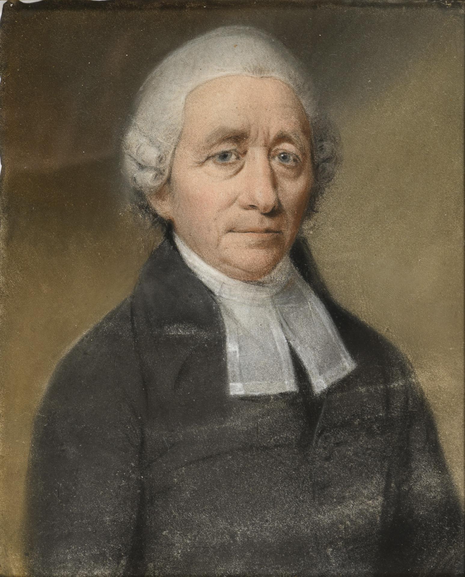 High-quality portraits of a couple in late rococo dress with white plaited wigs against a neutral background.