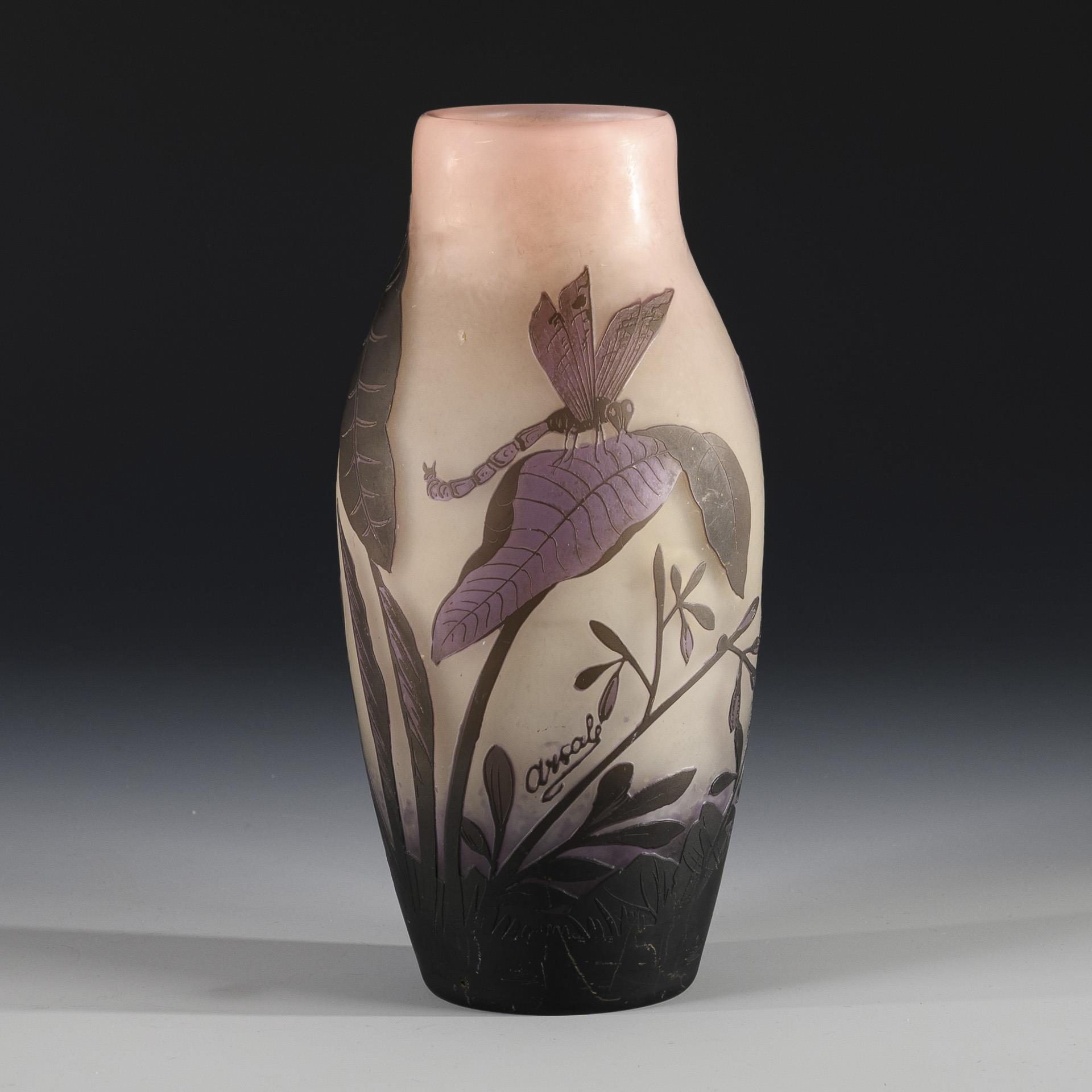 Rare Art Nouveau vase with dragonfly decoration. Arsall.