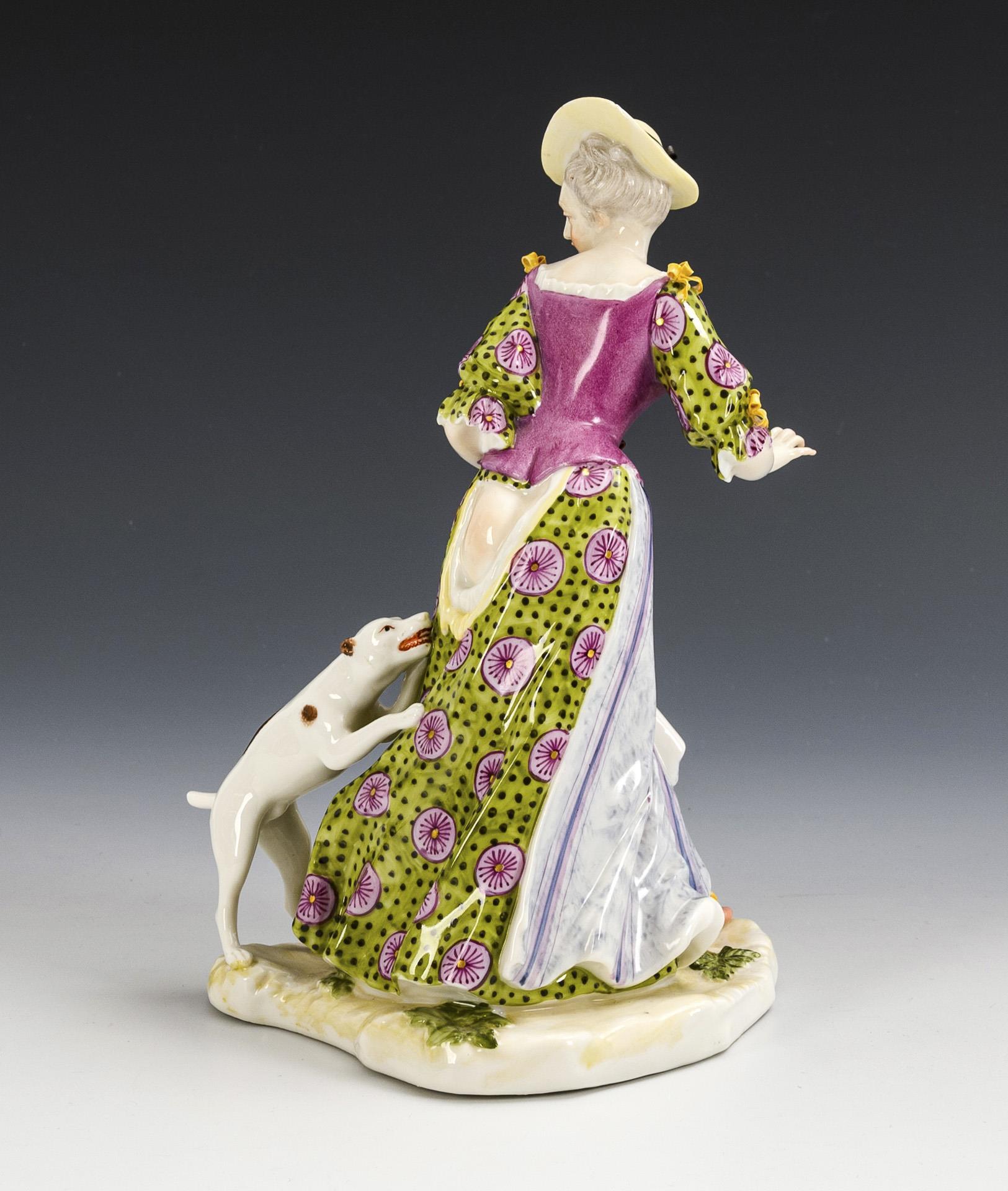 Lady standing on a rocaille base, looking around for a dog tearing her dress. 1 bow bumped.