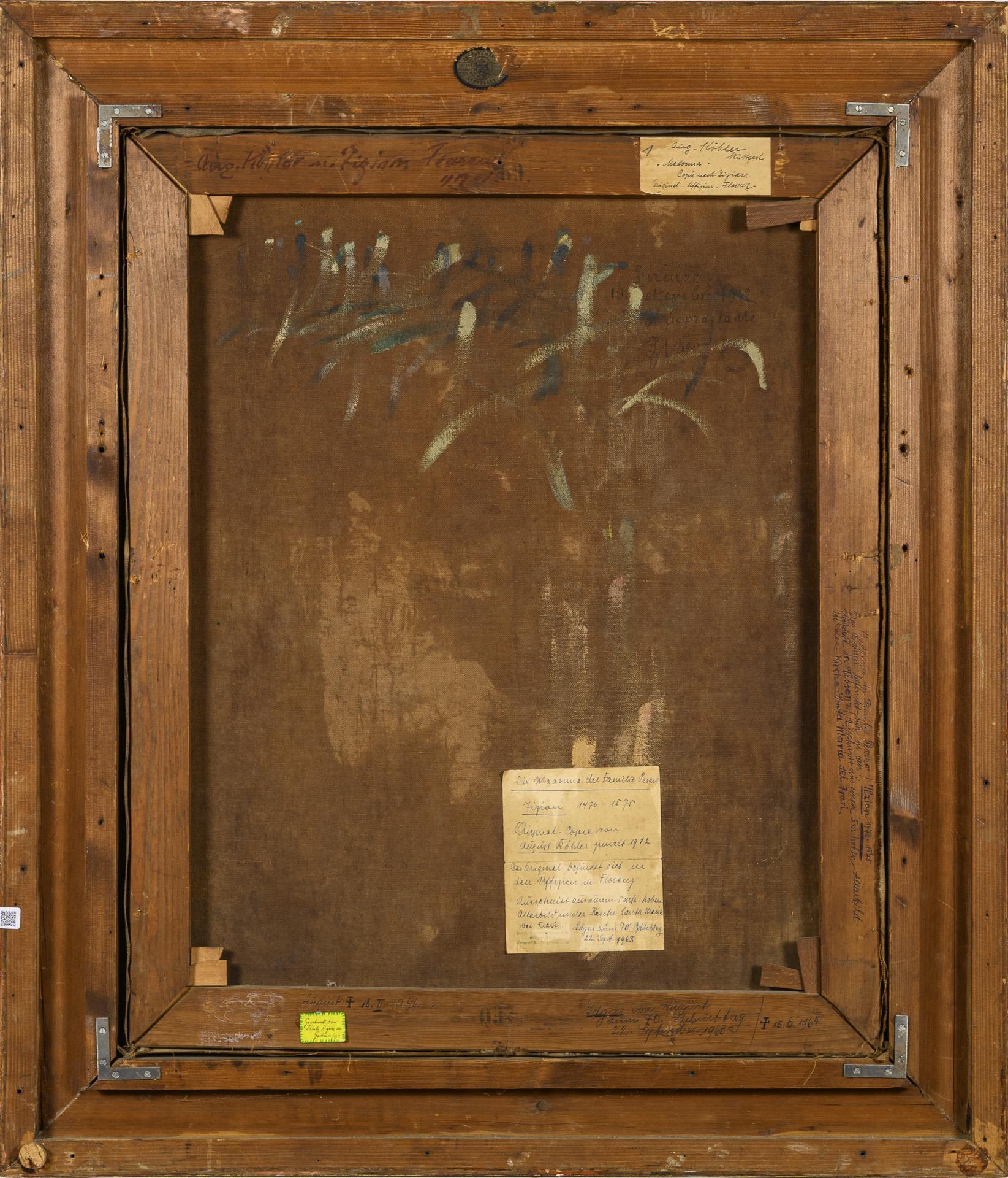 Oil/canvas. Signed lower left with annotation "Copie nach Tizian Florenz", signed/titled verso. 1912.