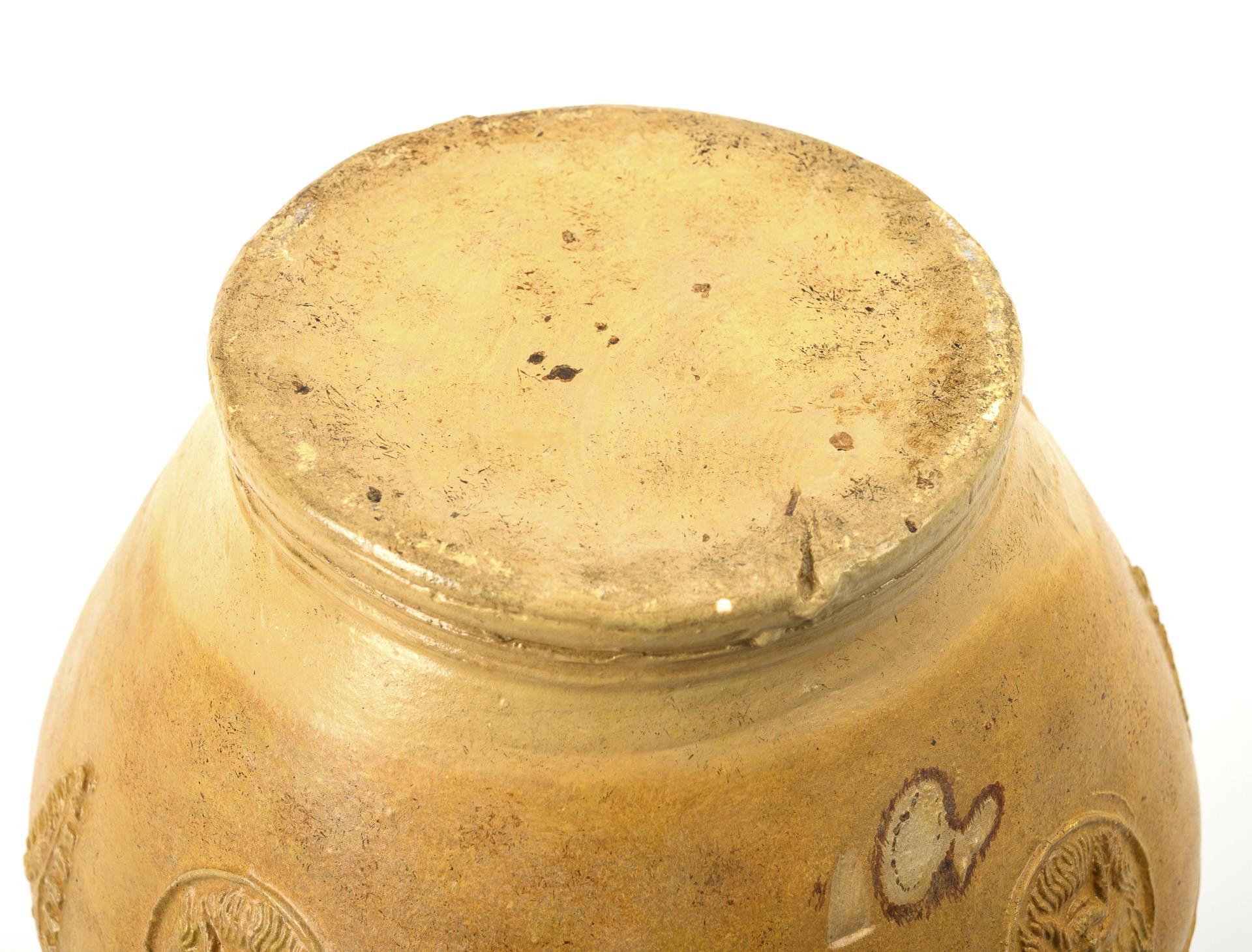 Plaster cast, sand-colored and ochre-yellow cold glaze. H 26 cm.