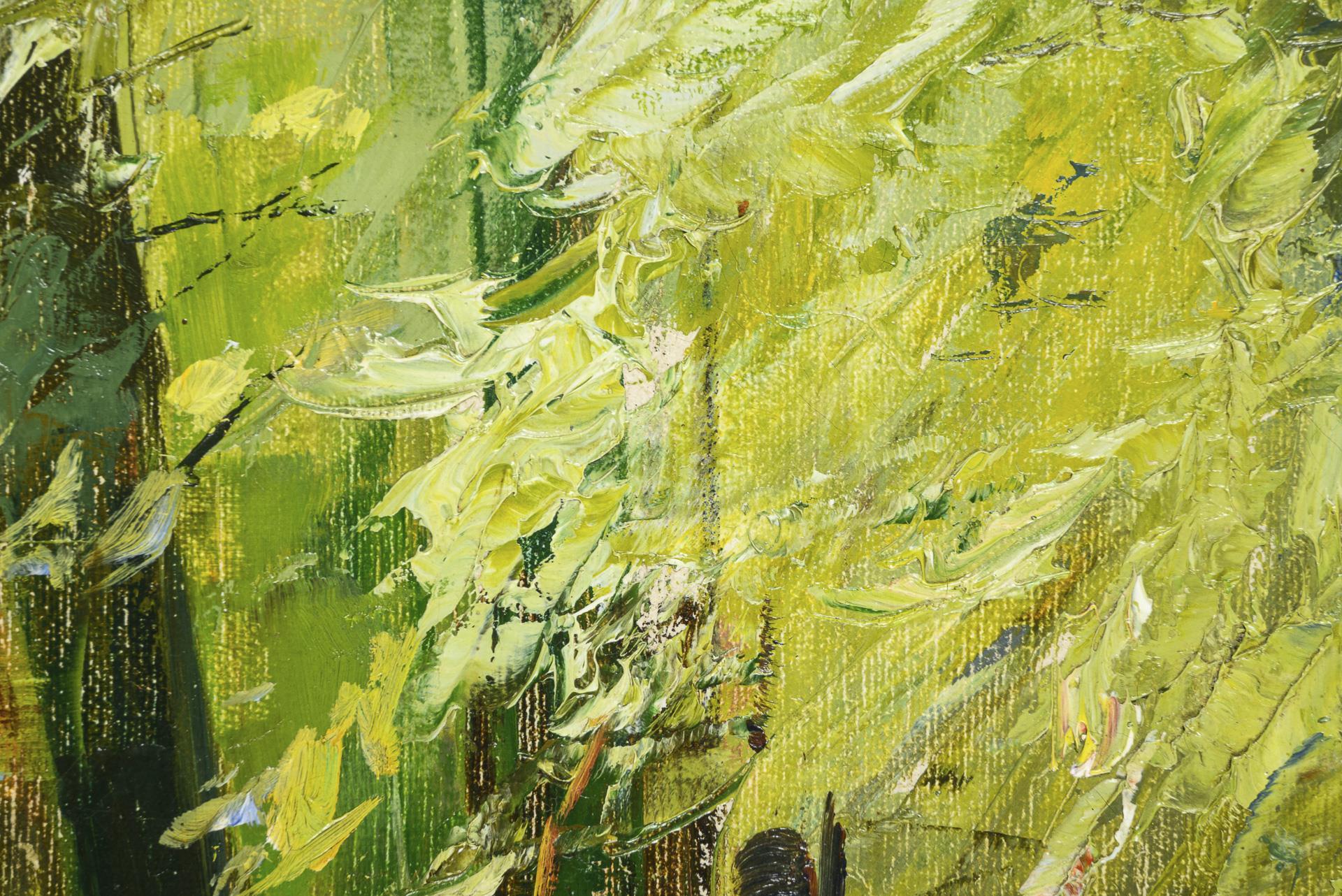 Two female nudes in the shade of the trees on the lakeshore. Small restored areas with adhesive backing.