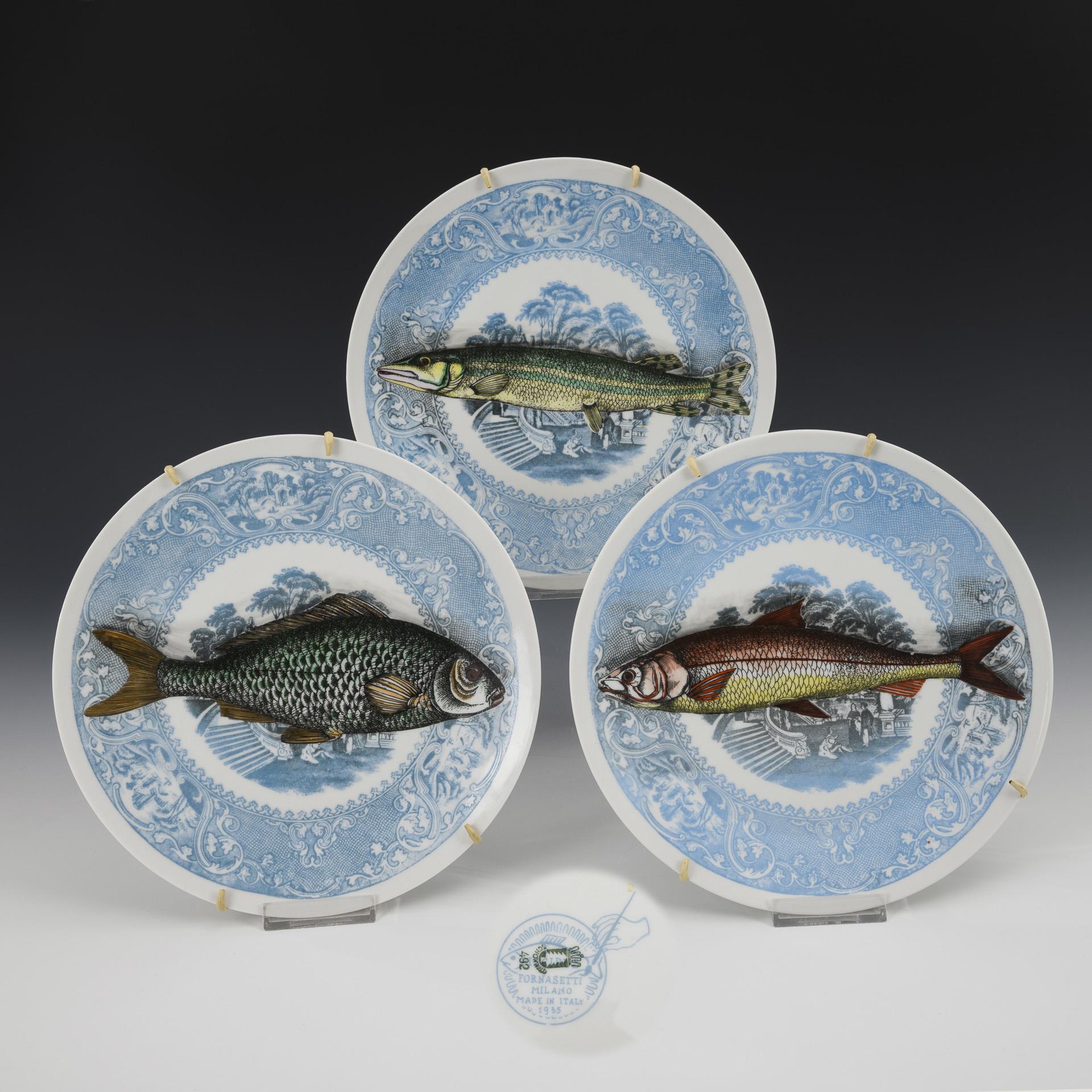 3 plates with fish decoration. Piero Fornasetti/Milano.