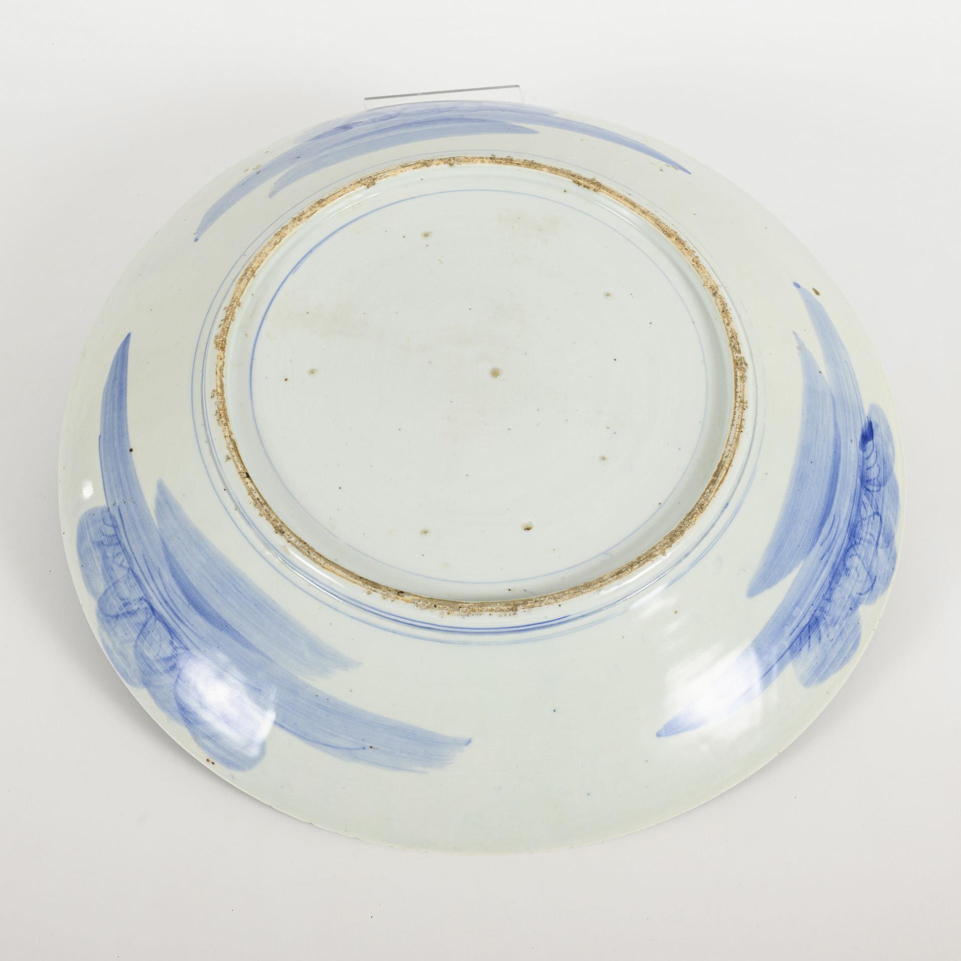 Bowl-shaped plate with plants and a piece of rock, as well as a prunus branch. Underside with stylized bushes. Ash marks in the glaze, a small glaze flaw.