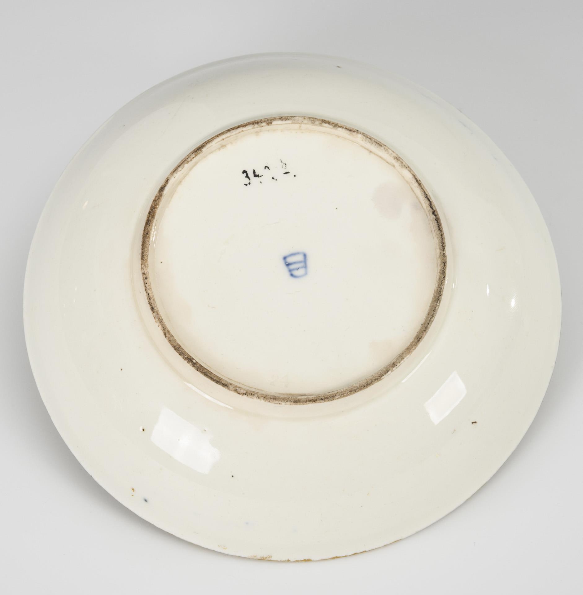 Polychrome painting, underglaze blue painting, gold decoration. Ø 14 cm.