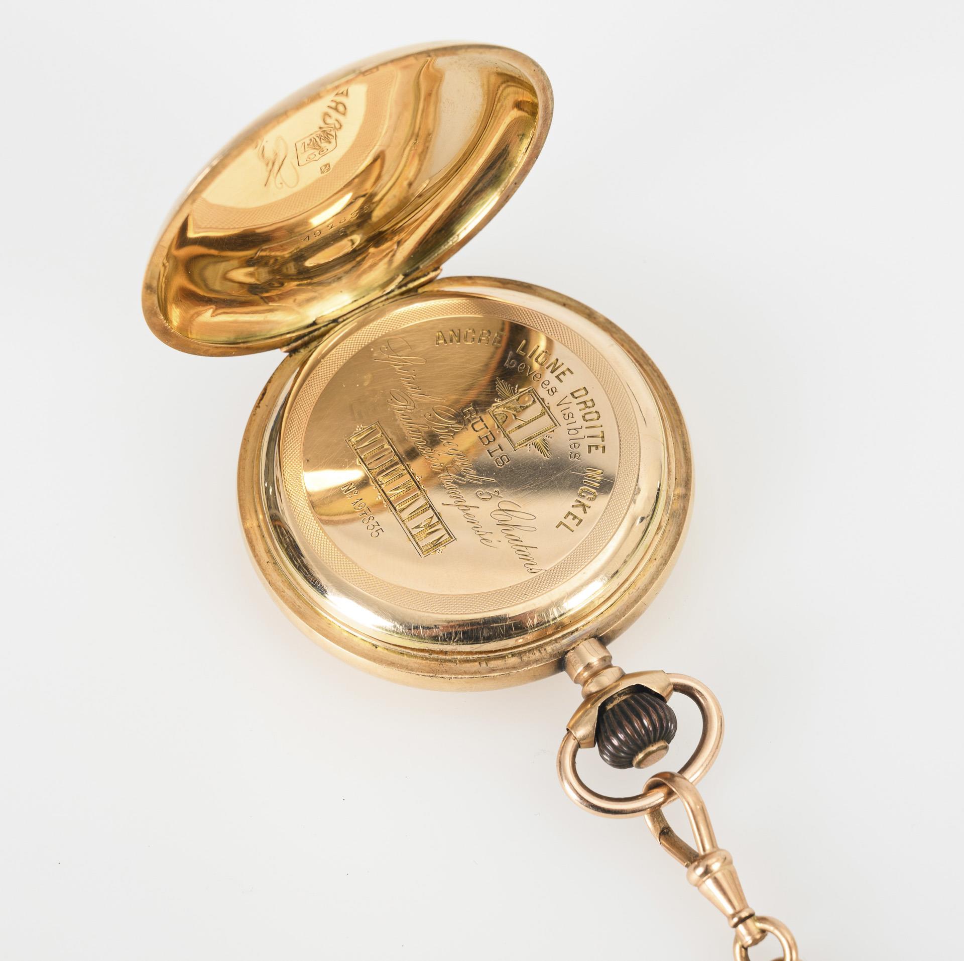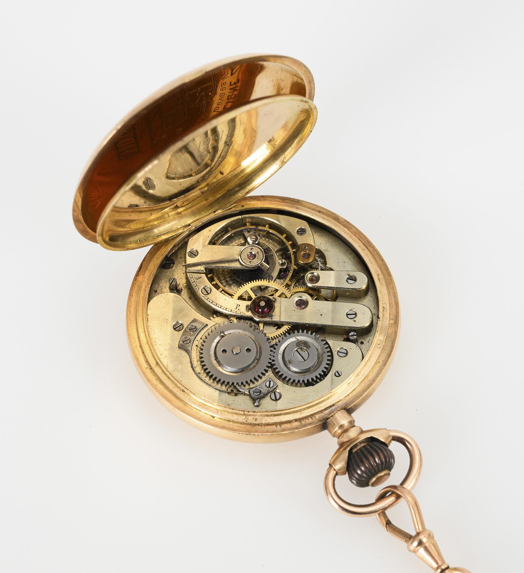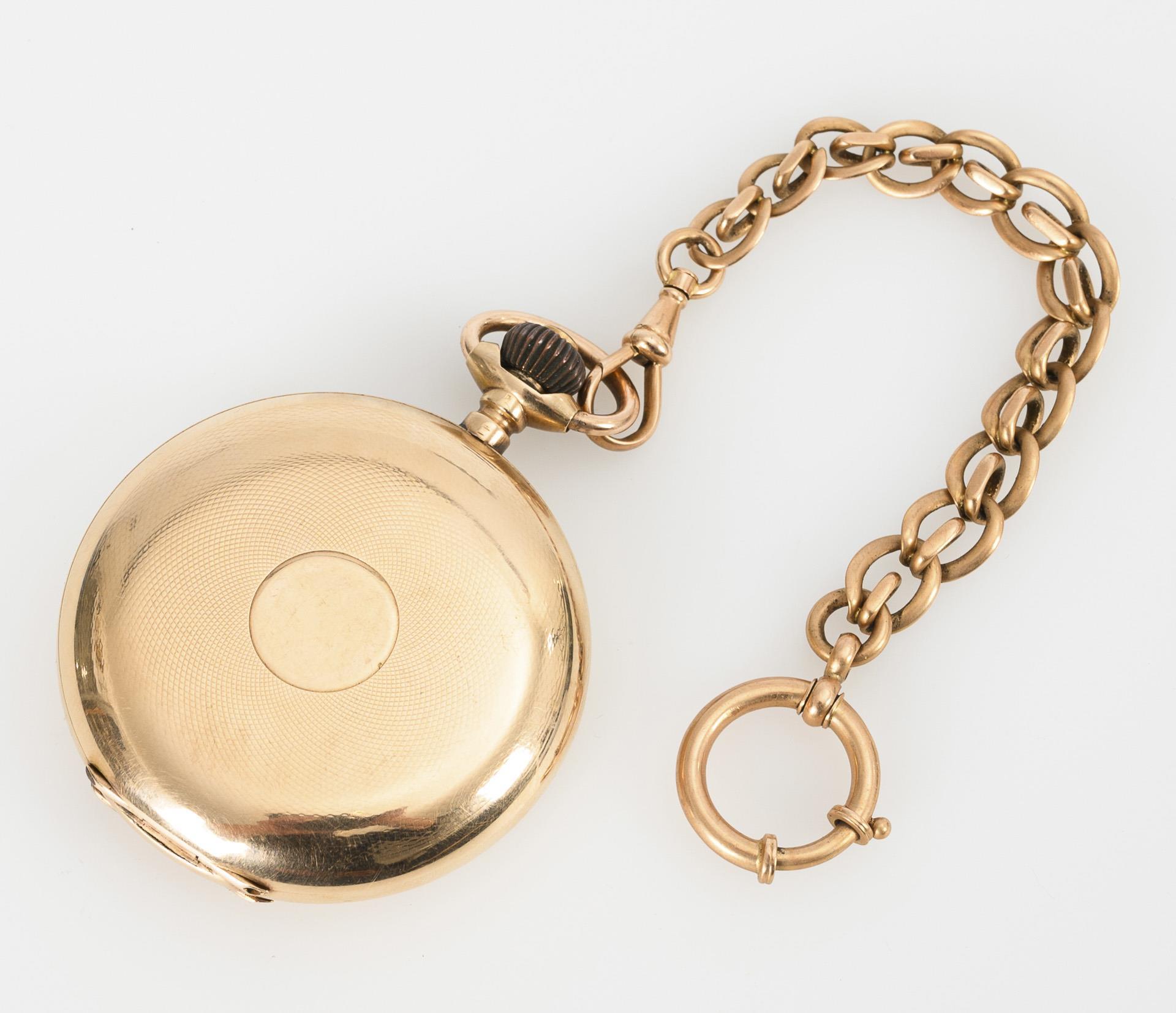 Golden savonnette with golden watch chain.
