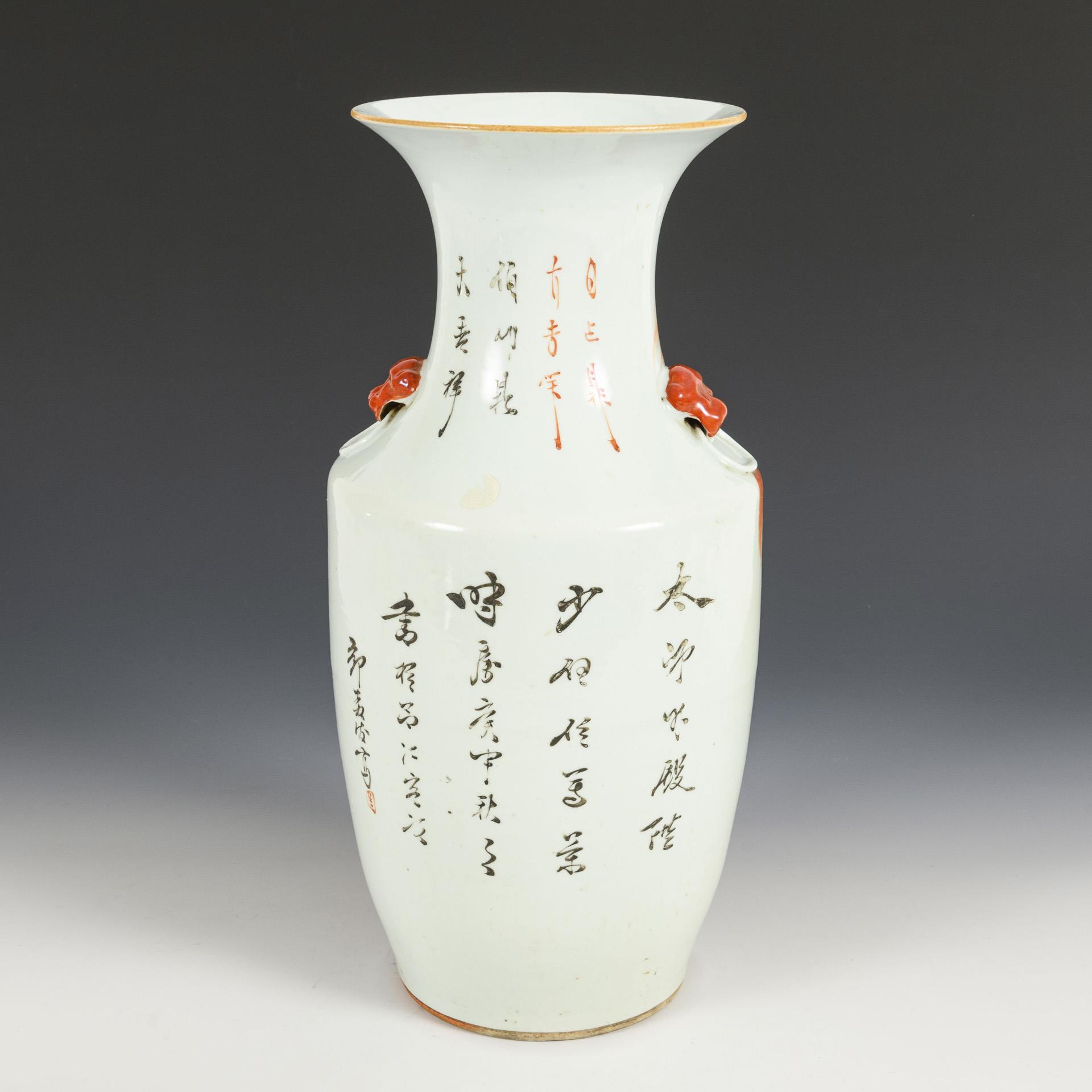Dynamic depiction of a mythical creature with two small animals. Paint somewhat rubbed.