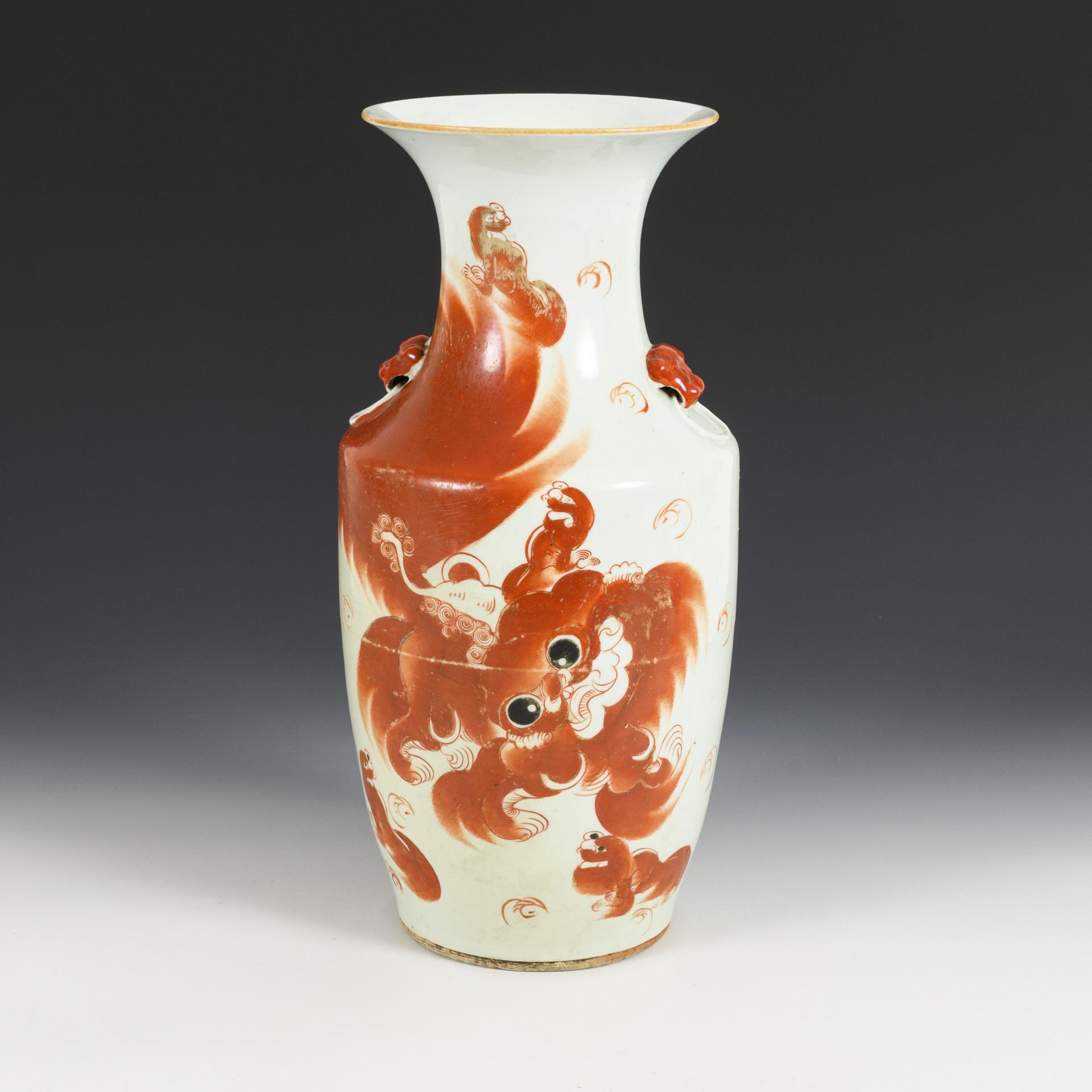 Porcelain vase with large red Fo dog.