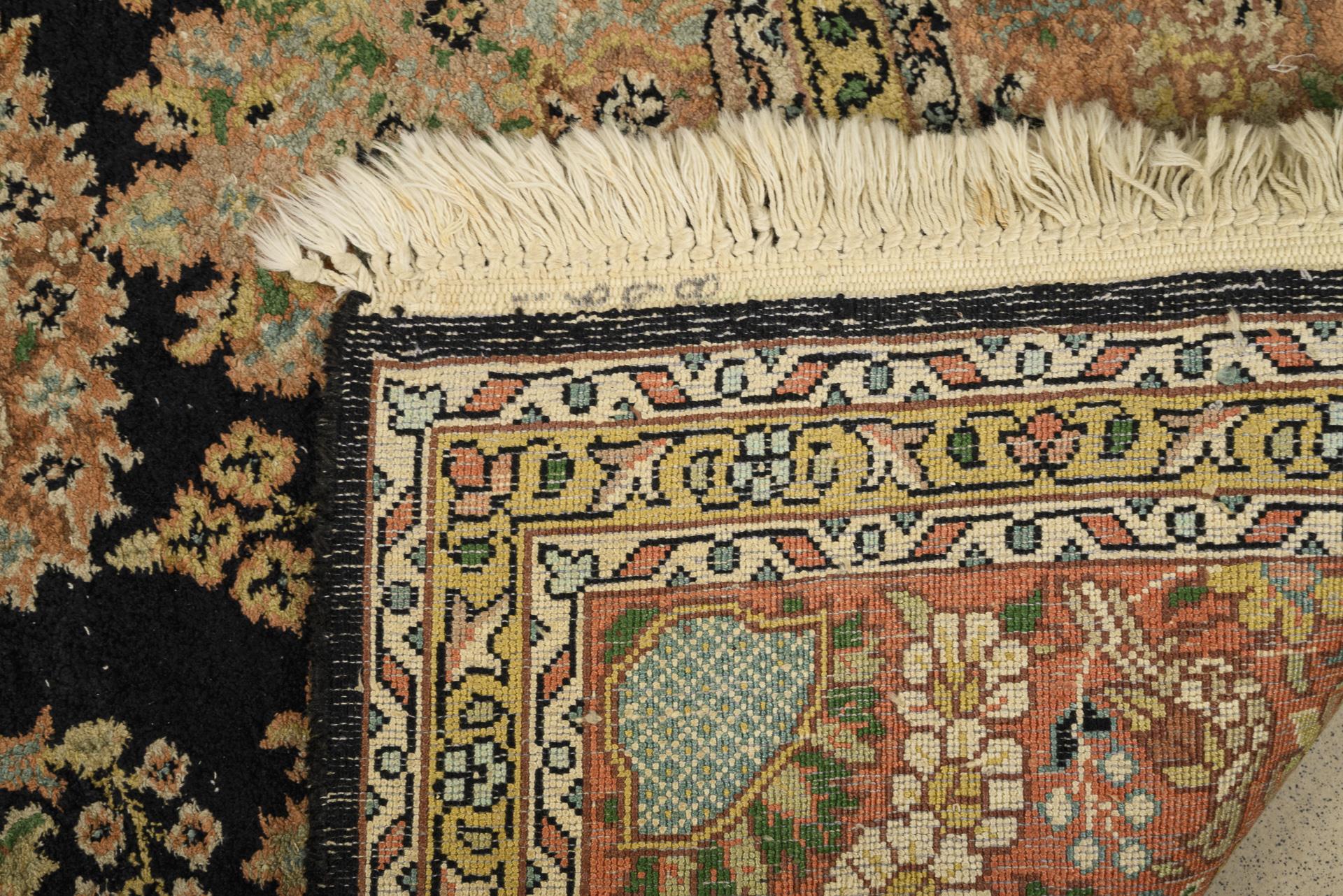 Silk on cotton, very fine hand-knotting. Polychrome pastel decoration. Approx. 93 x 155 cm.