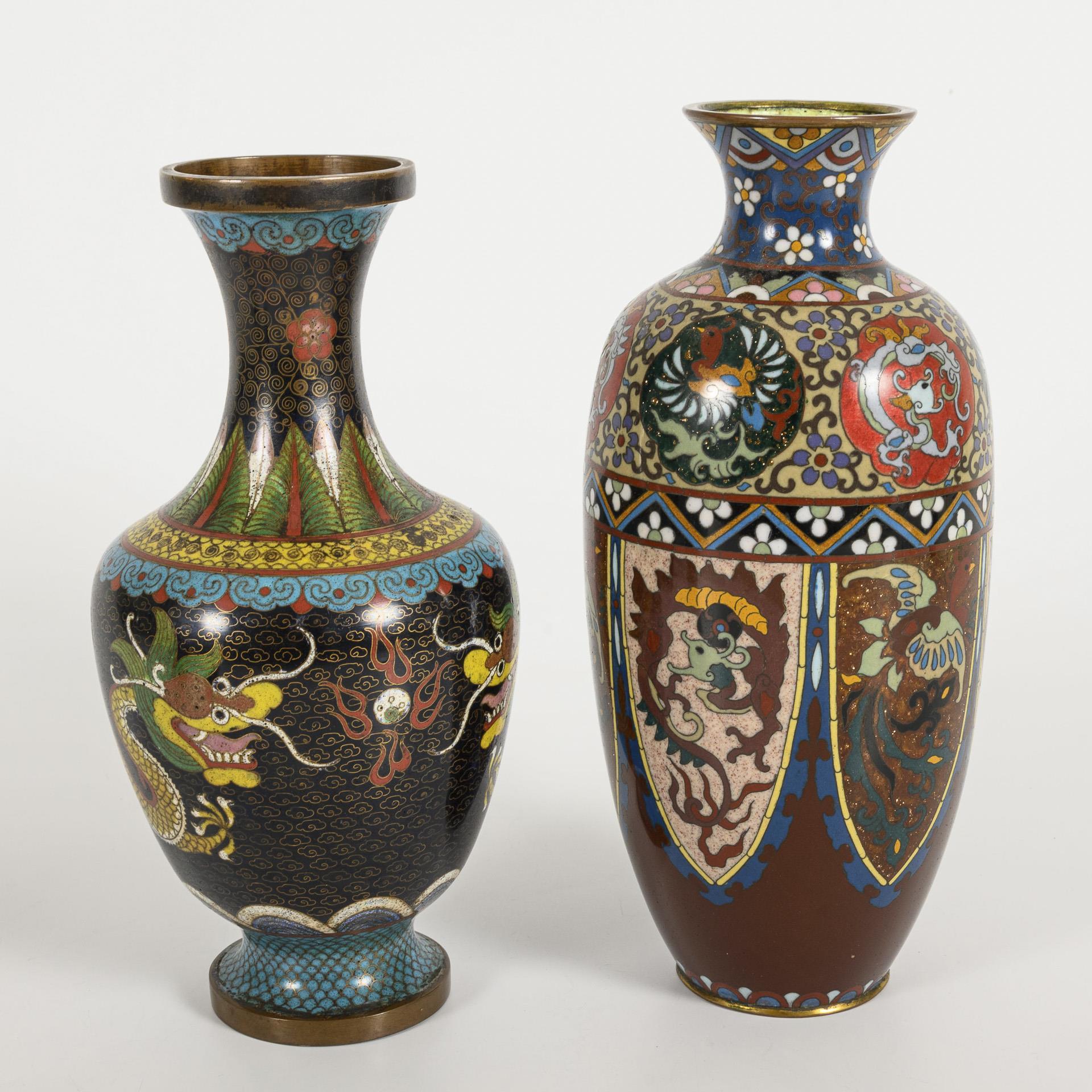 4 cloisonné vases.