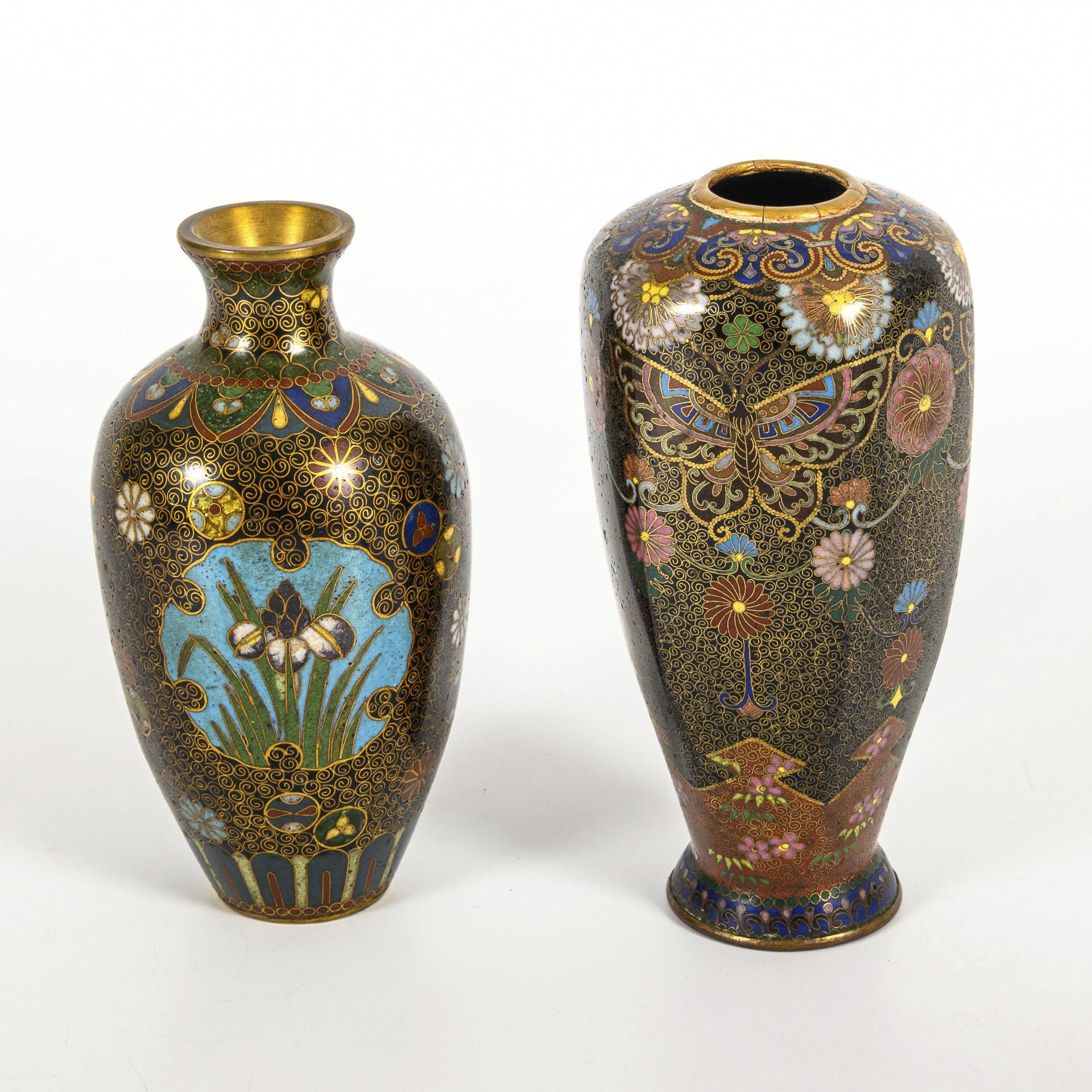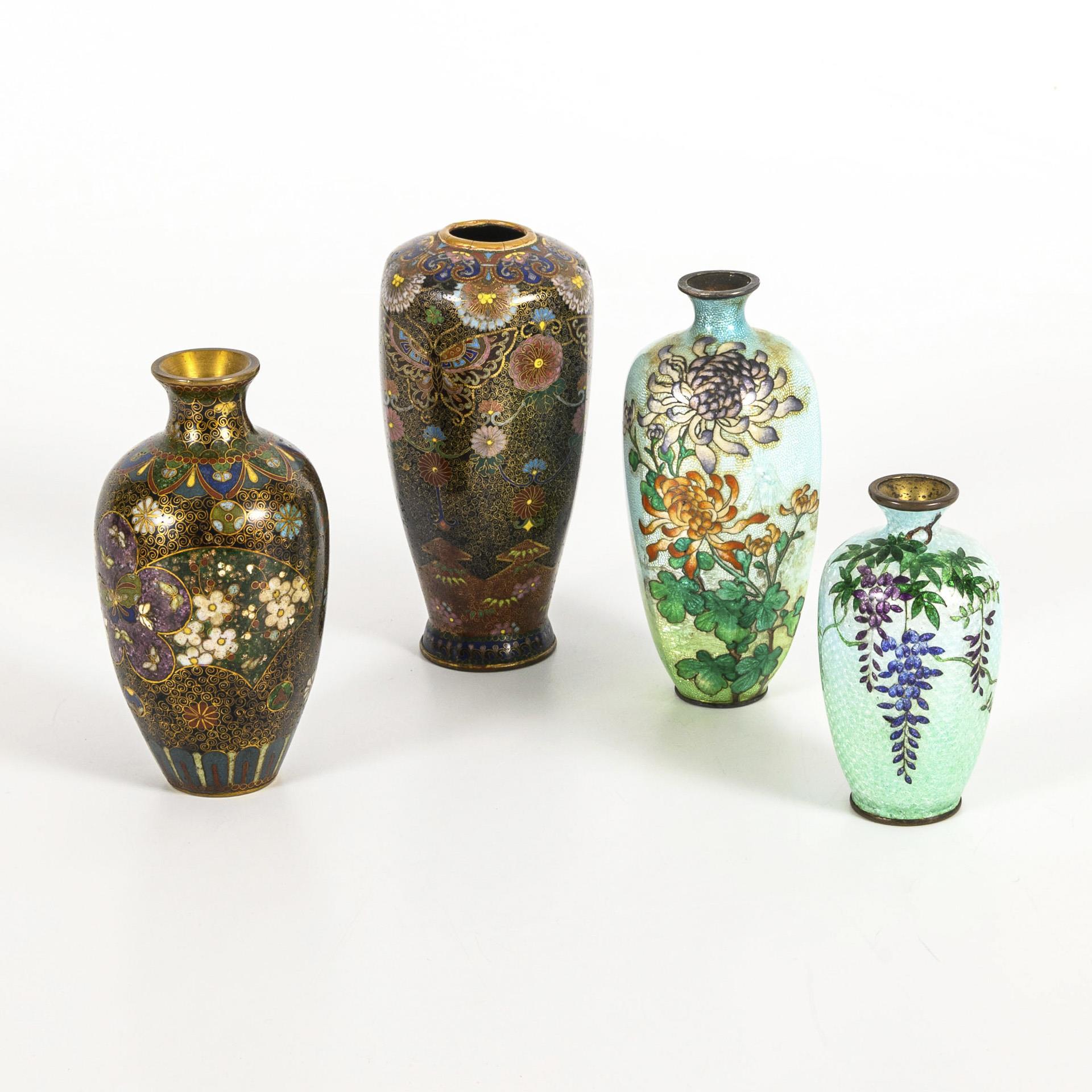 4 small cloisonné vases.