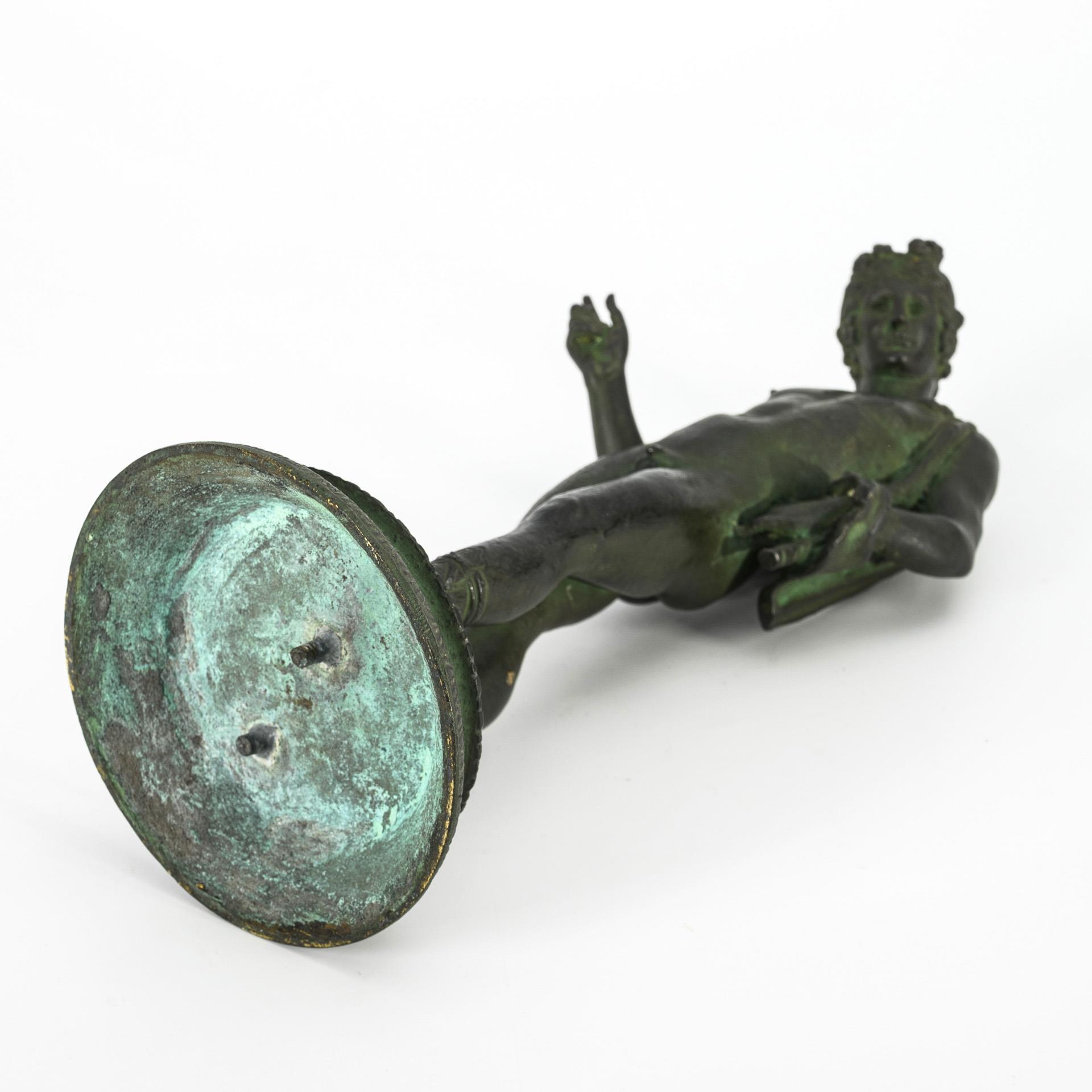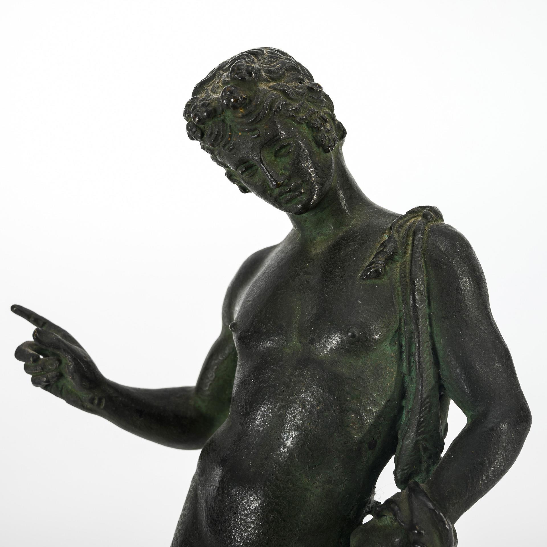 Naked god of wine (Roman Bacchus) with Nebris over his shoulder, modeled after the ancient statue from Pompeii. The original is now in the National Archaeological Museum of Naples. Few spots on the patina.