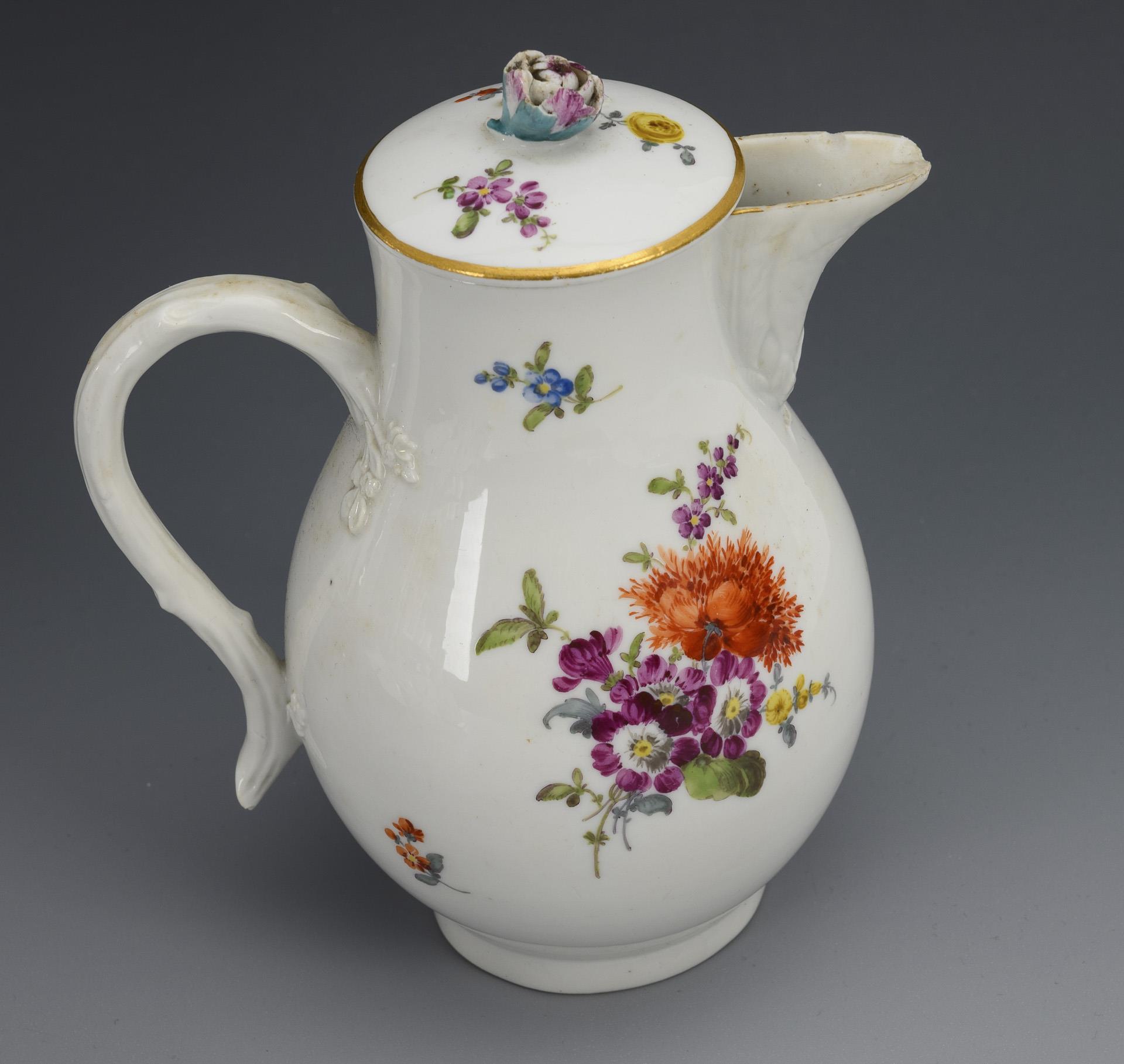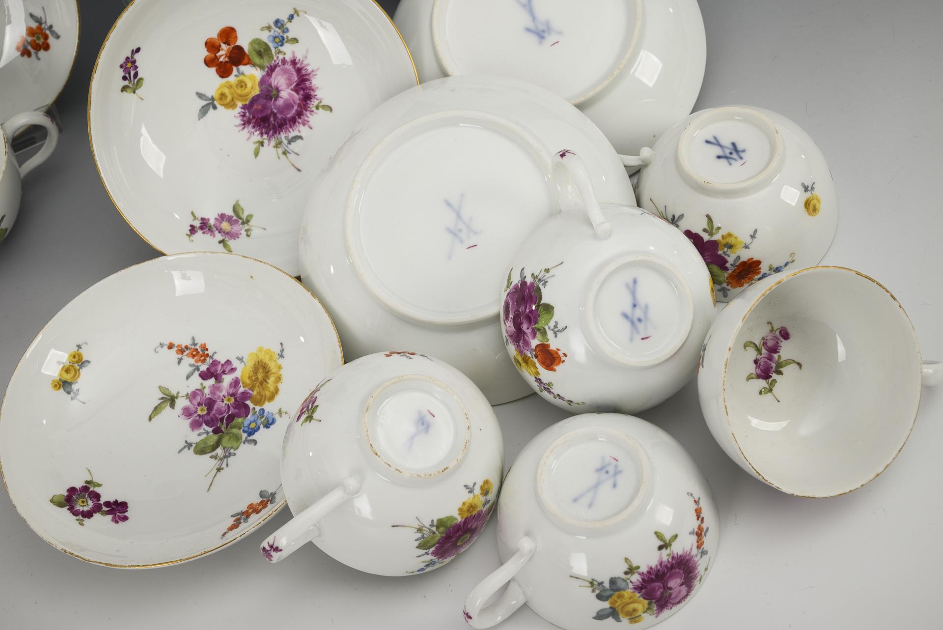 14 pieces of a baroque coffee service with flower painting. Meissen.