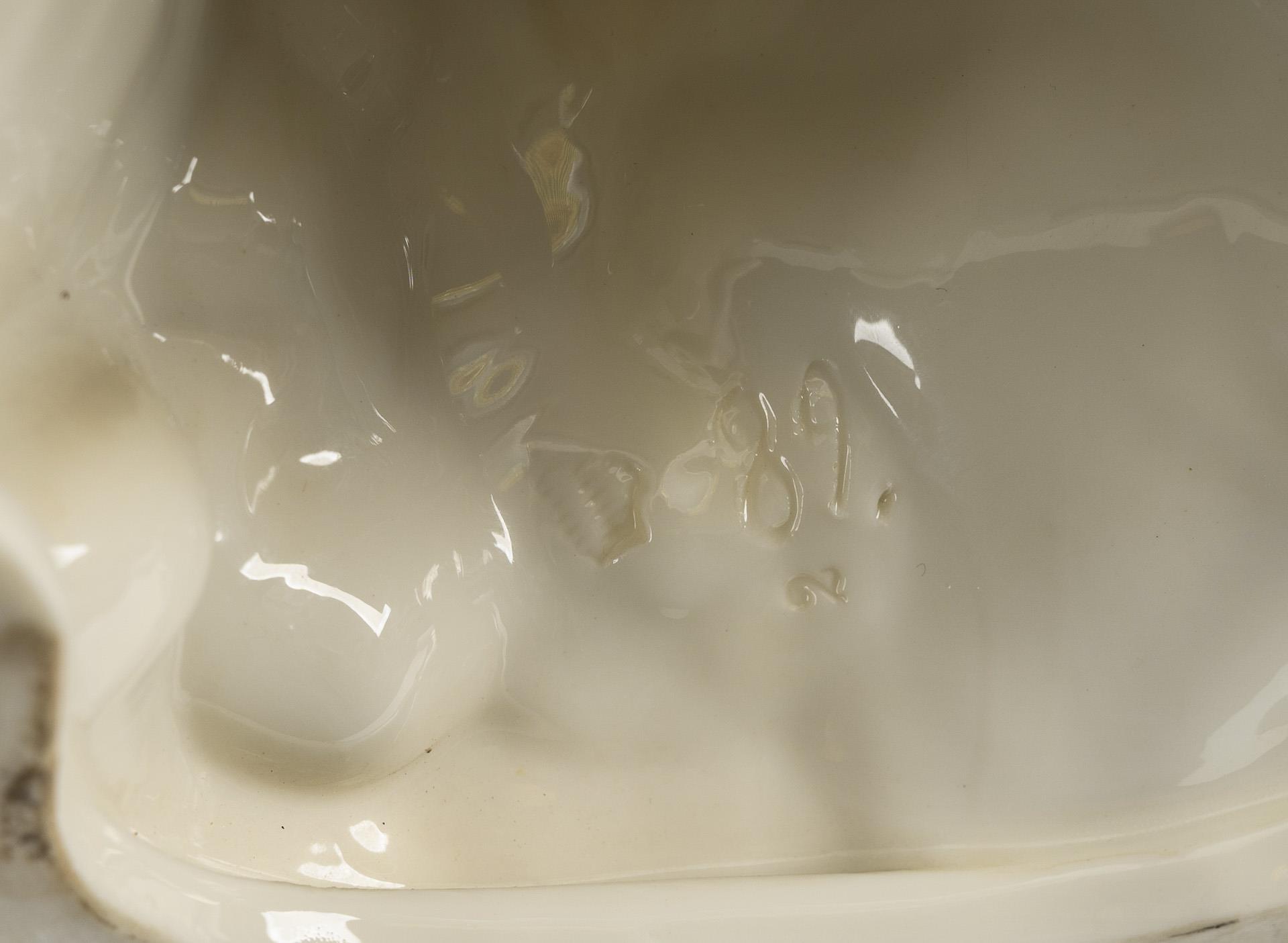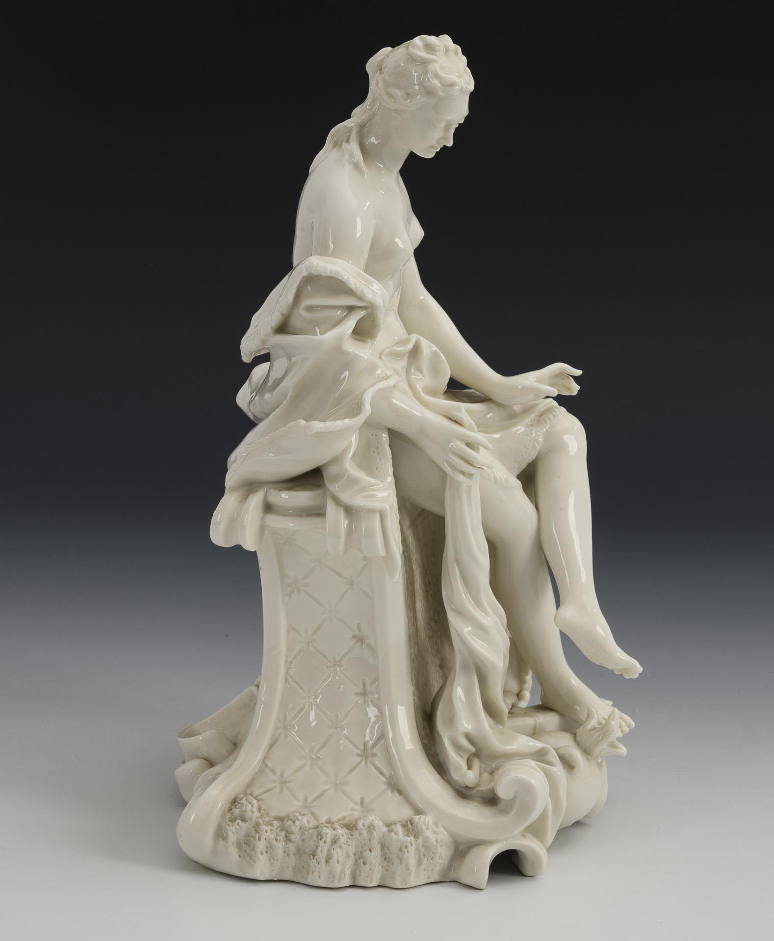Venus sitting on a rocaille base with bow and quiver at her feet.
