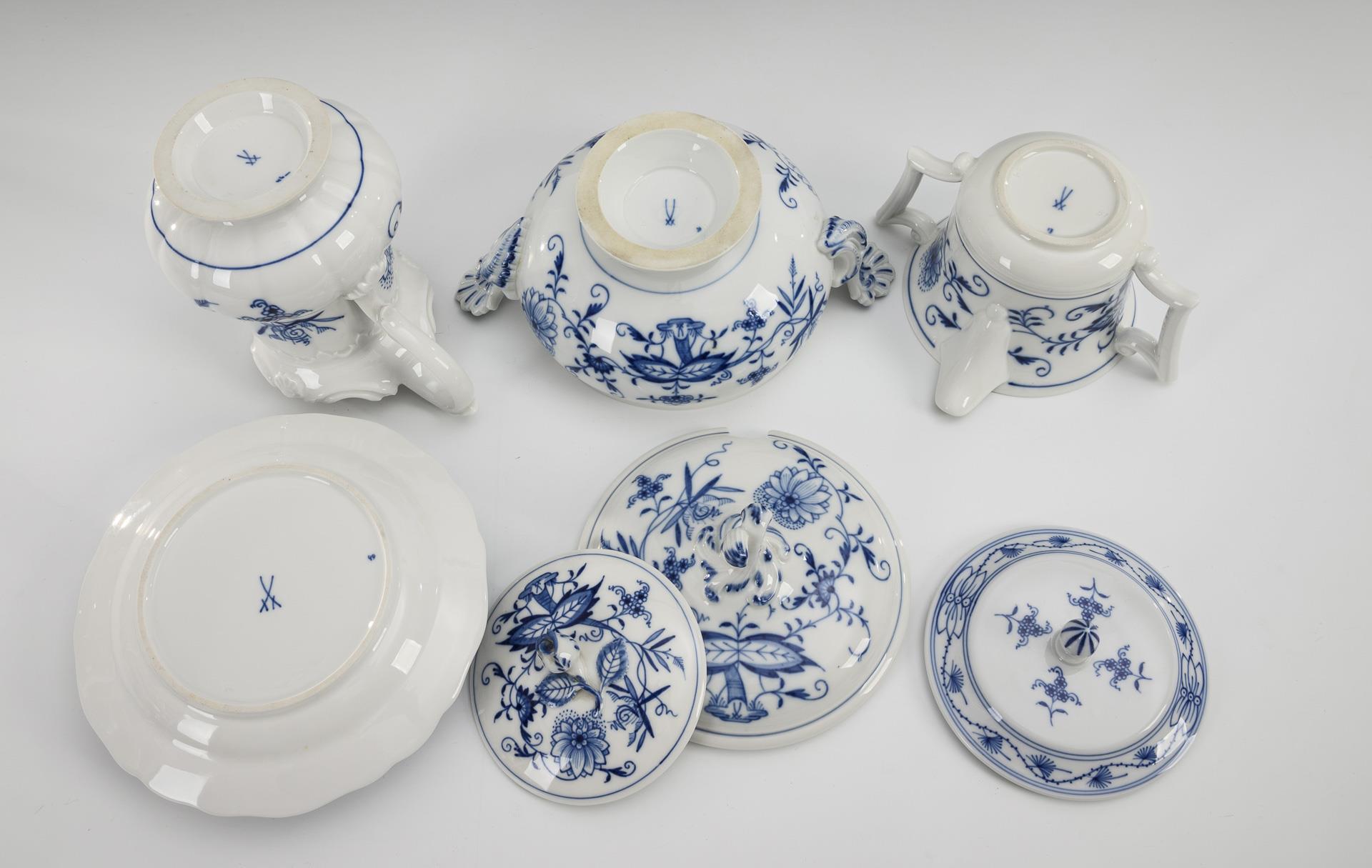 Small tureen (H 15 cm), sauce boat with fat separator (H 12.5 cm), jug (H 15 cm) and butter dish (Ø 18.5 cm).