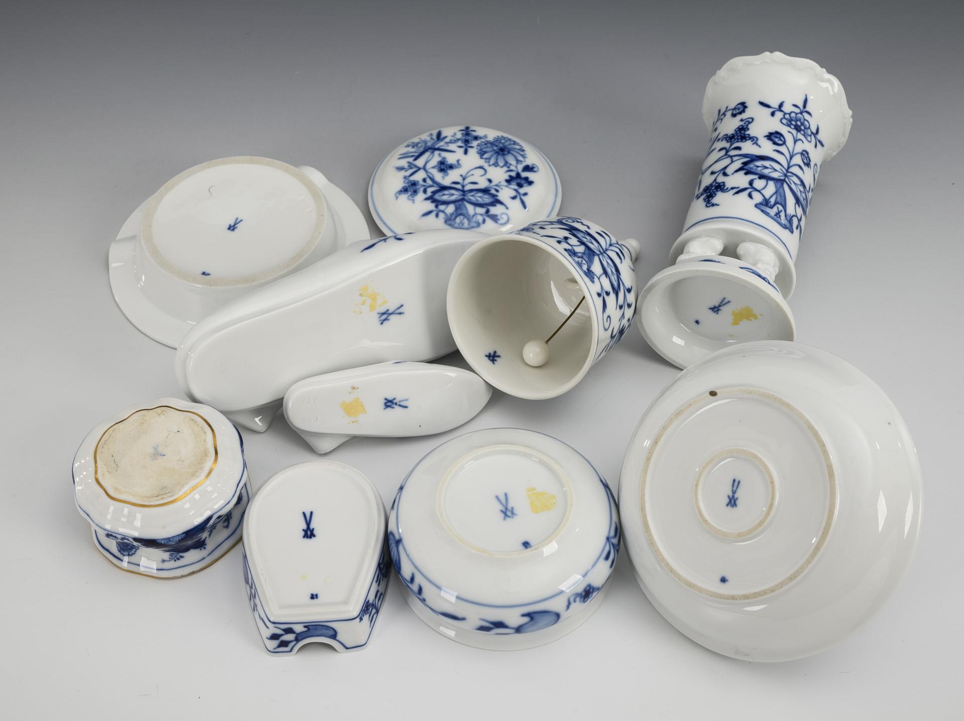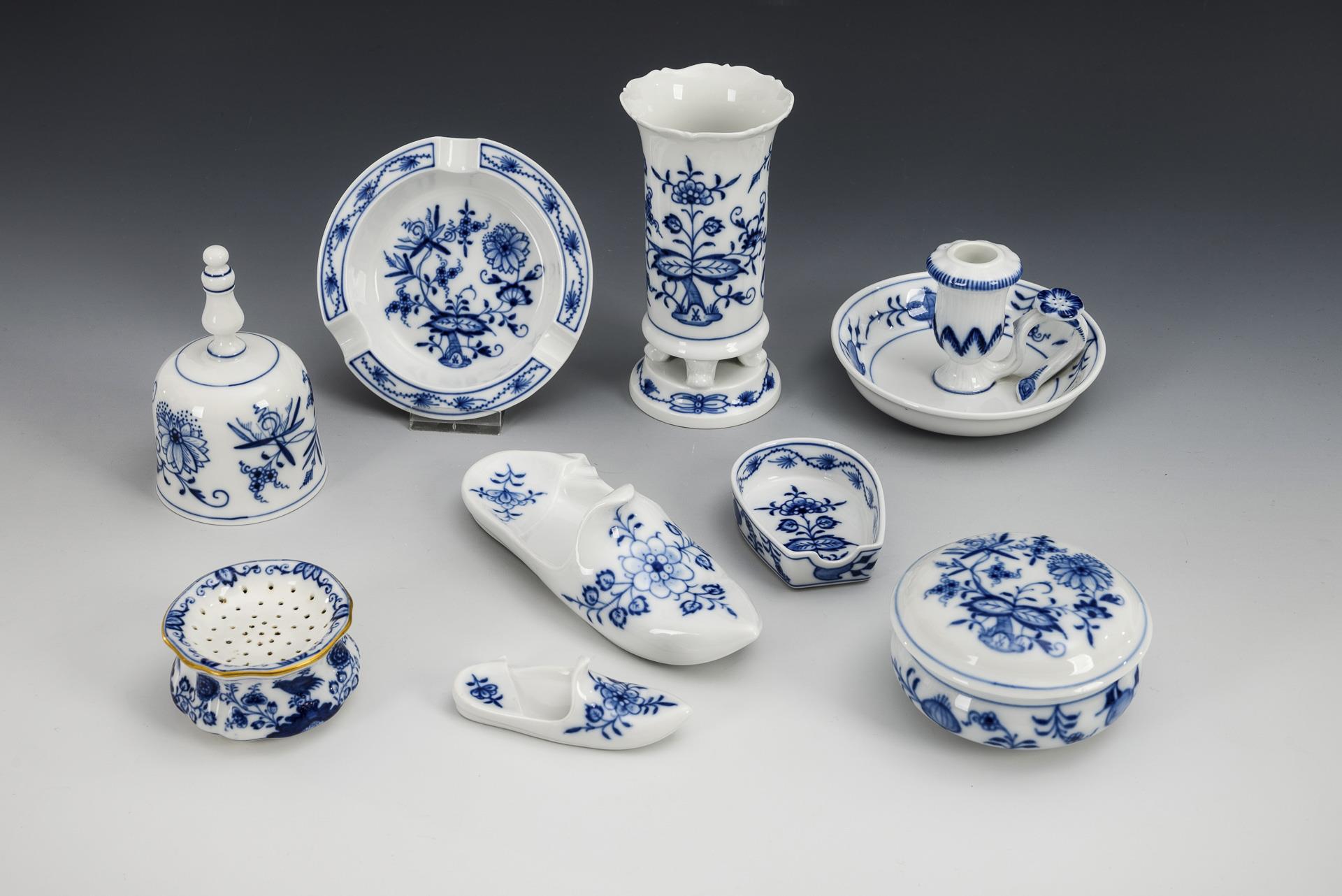 9 pieces onion pattern porcelain. Meissen.