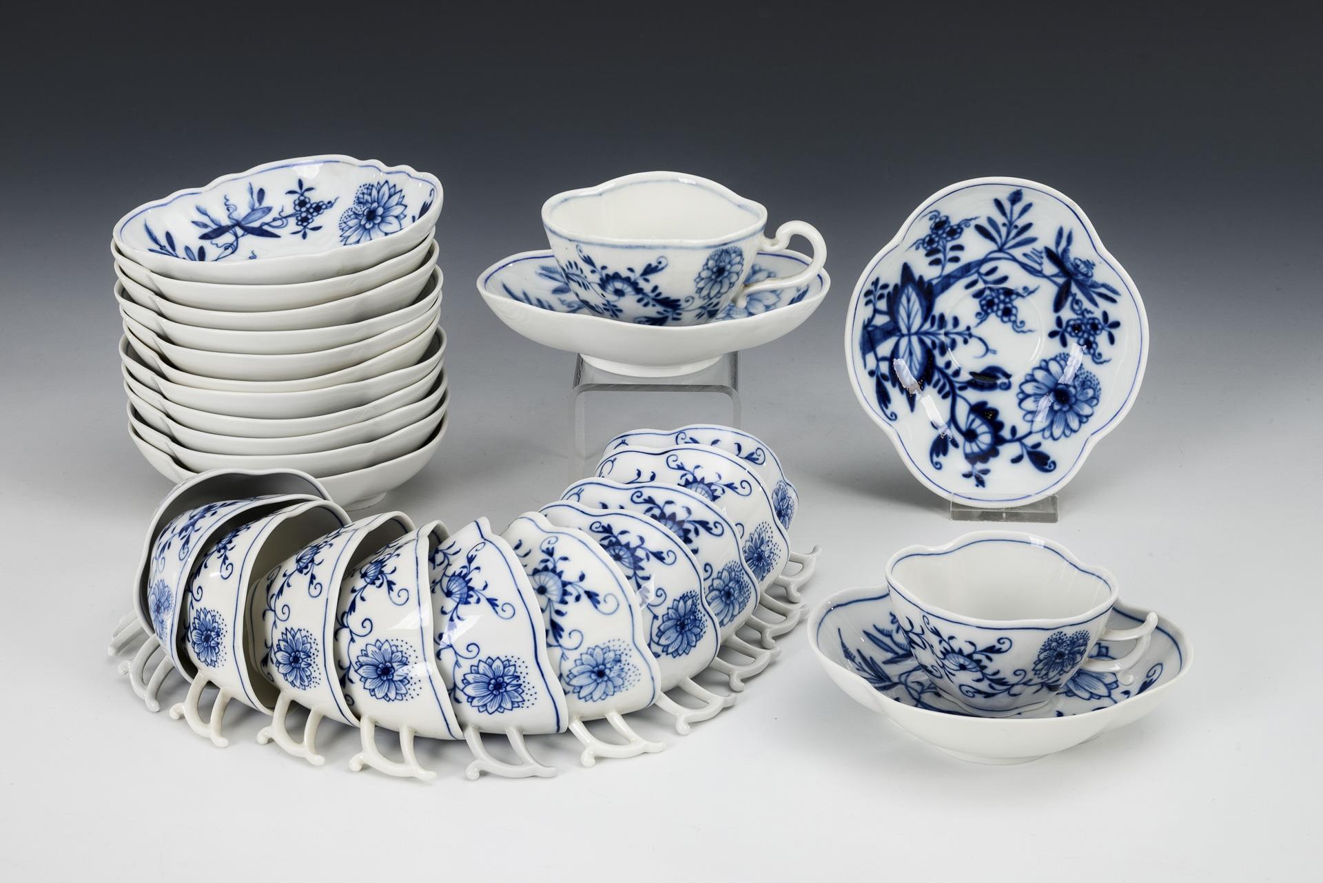 13 onion pattern four-pass cups. Meissen.