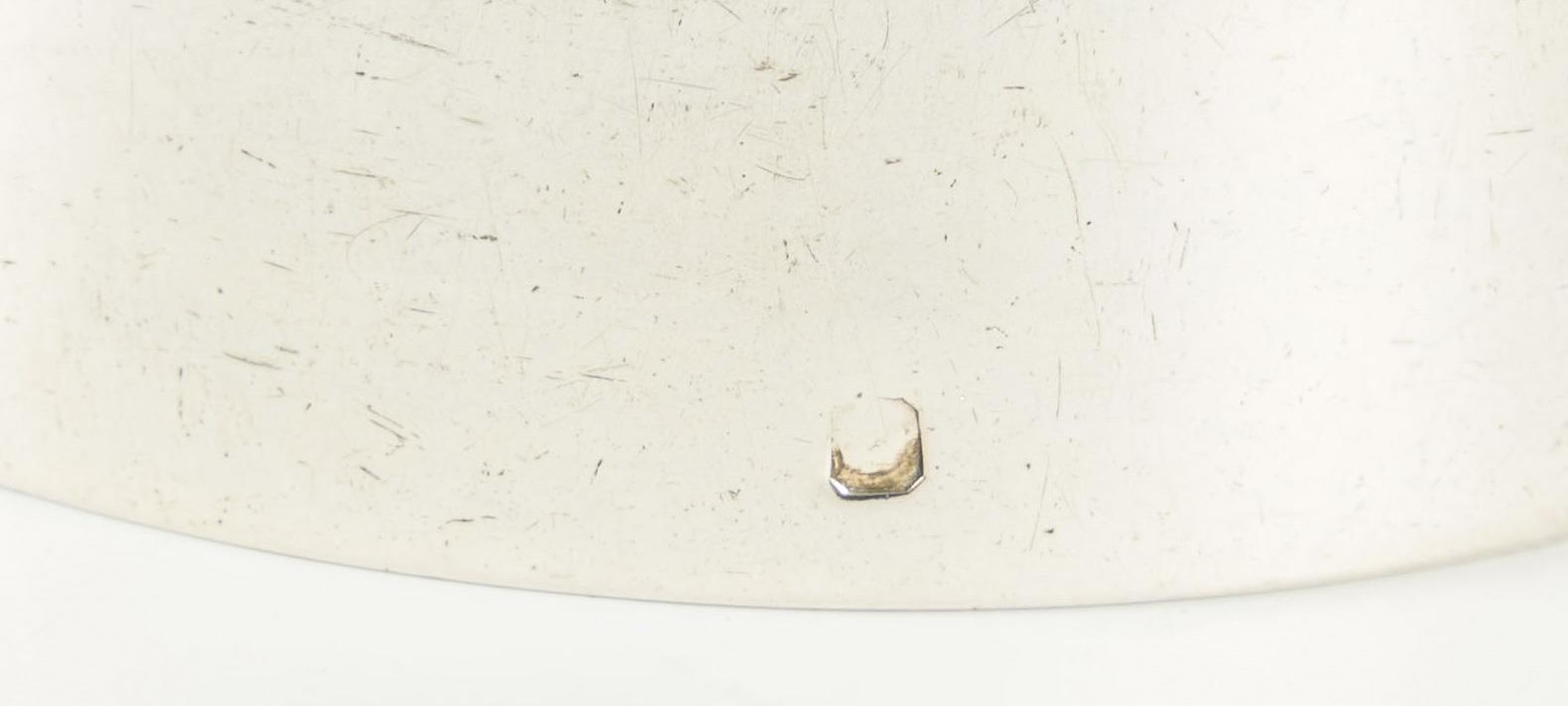Conical cup with thistle motif in relief and engraved name "Jeanne". Small dents, traces of soldering inside.