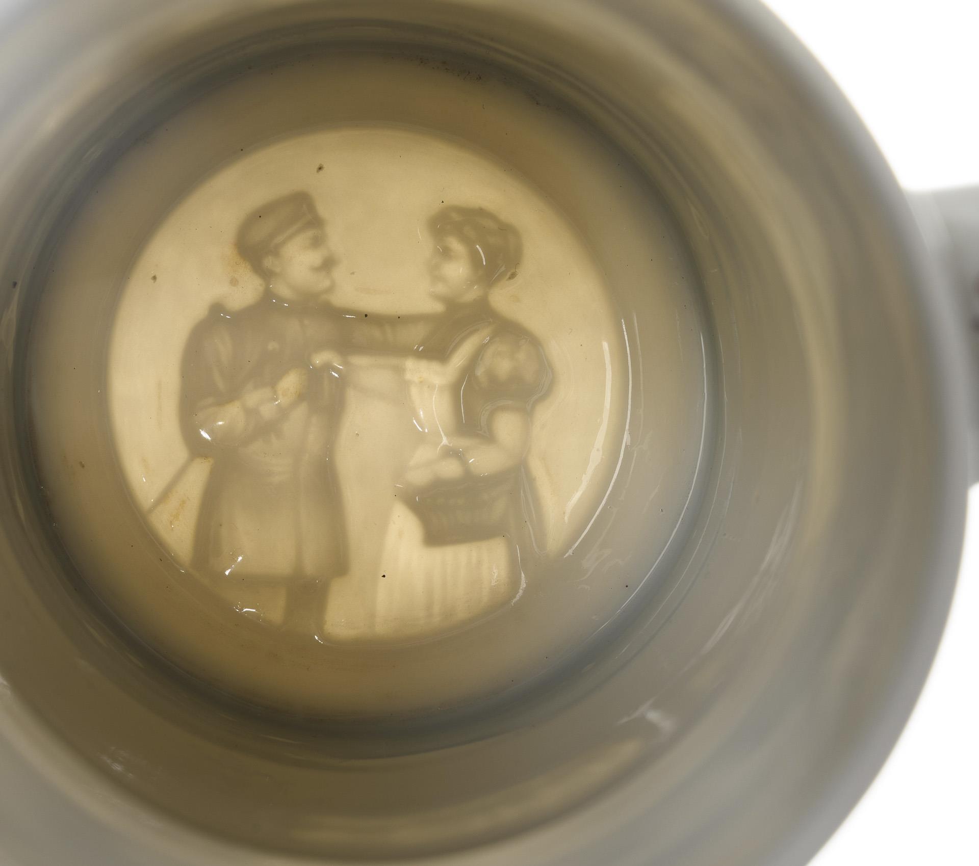 Porcelain with bottom lithophane (farewell), colored outline print, pewter. H 27 cm.