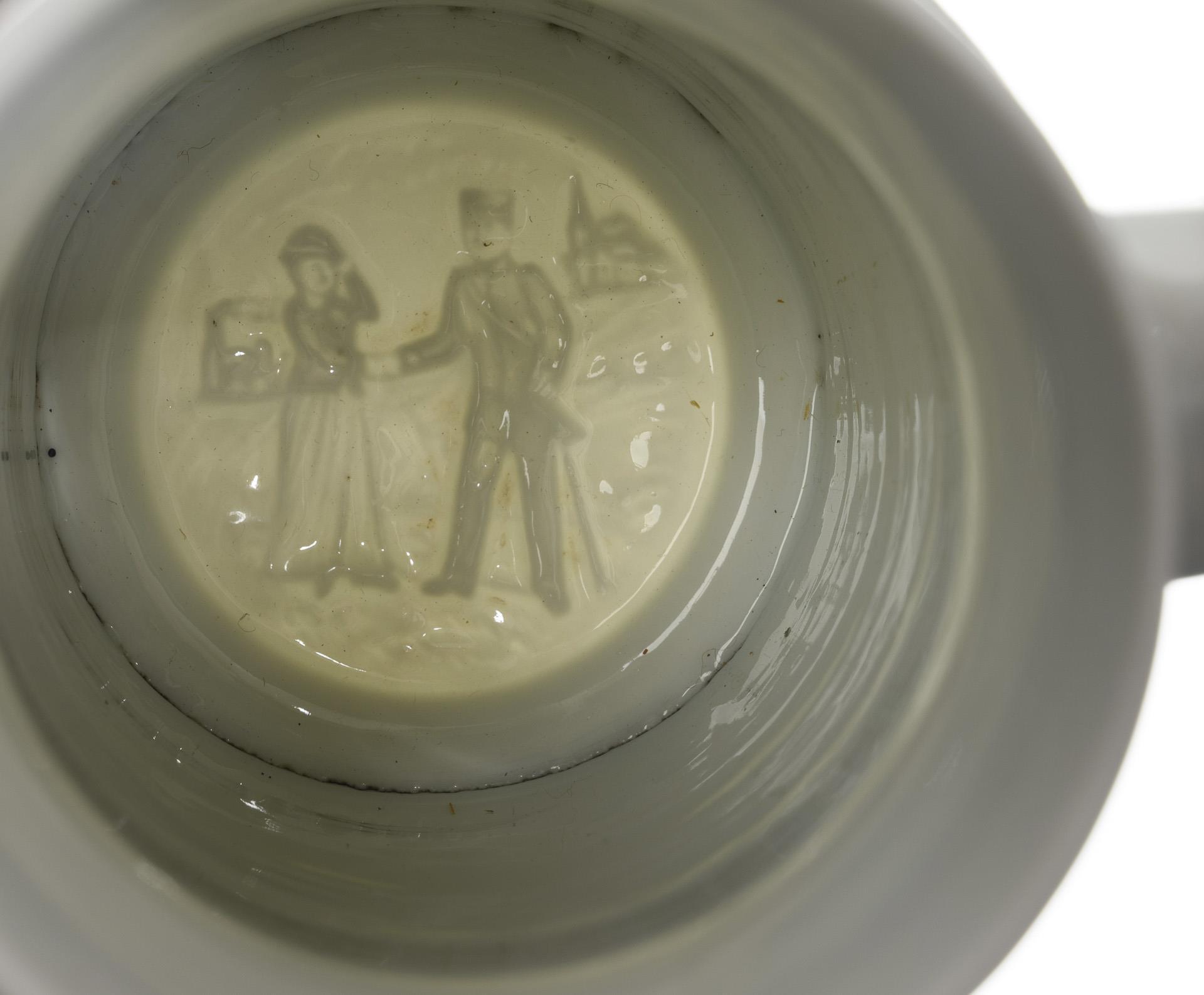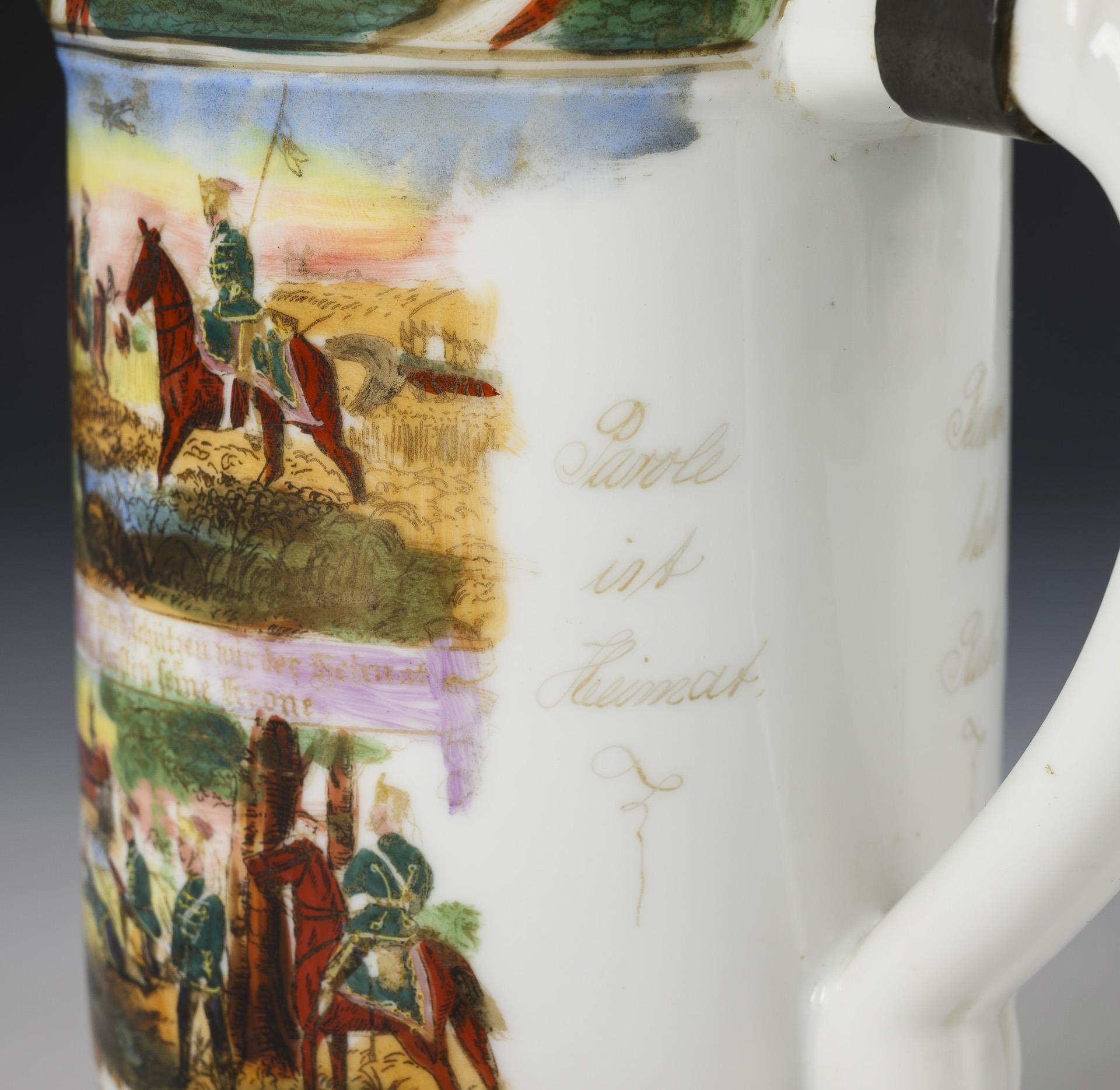 Porcelain with bottom lithophane (farewell), colored outline print, pewter. H 29 cm.
