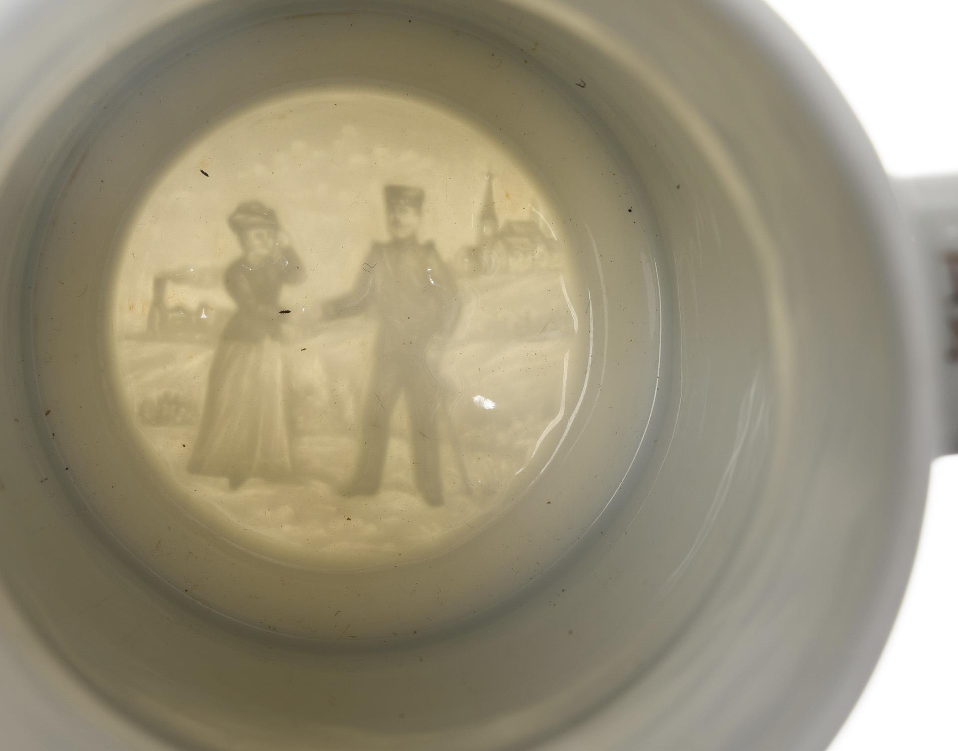 Porcelain with bottom lithophane (farewell), colored outline print, pewter. H 25 cm.