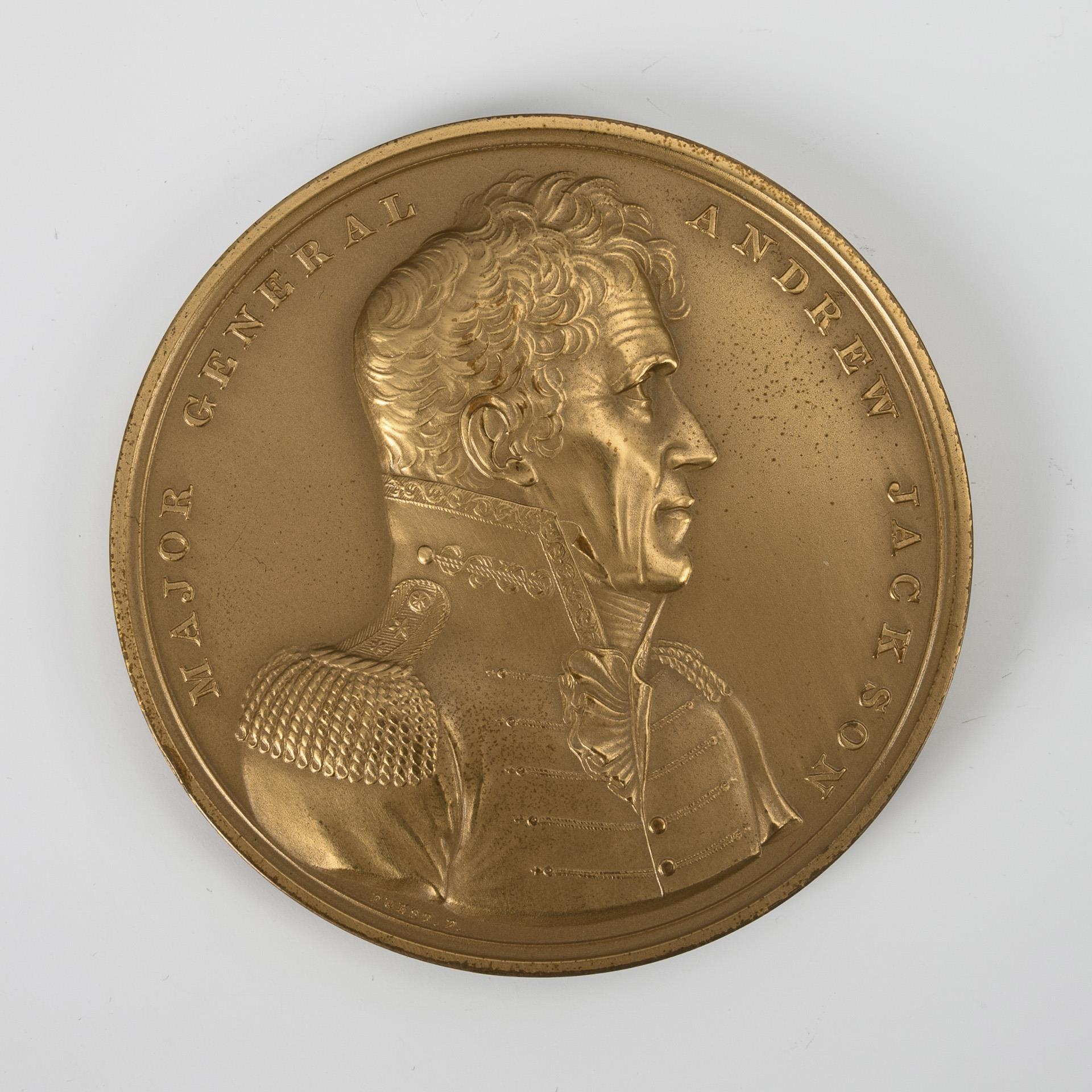 Portrait with inscription "Major General Andrew Jackson". On the reverse female allegories "Resolution of Congress February 27. 1815." "Battle of New Orleans"; each Furst. F. inscribed. Minimal traces of age/use.